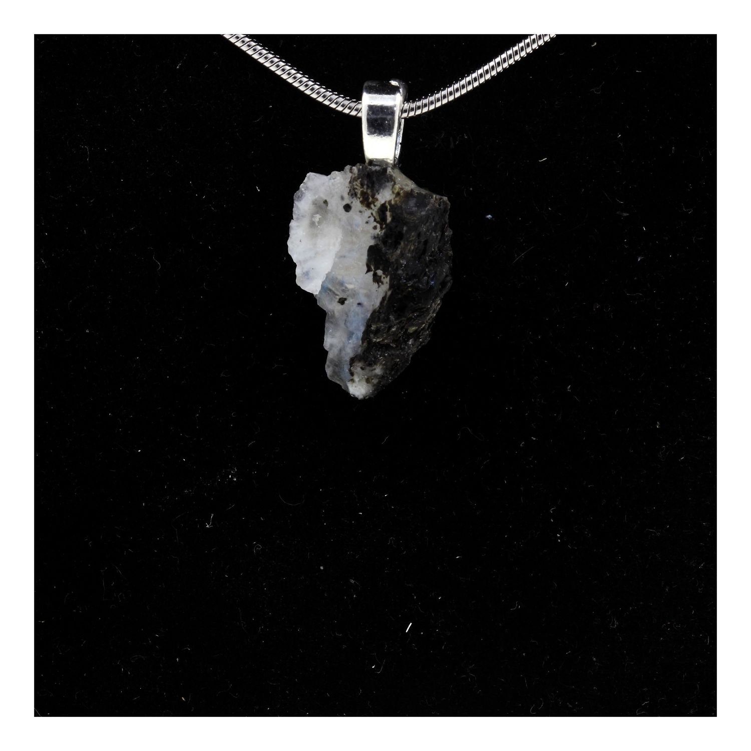 Collier Pierre de Lune brut + chaine en acier inoxydable longueur 40, 45, 50, 55, 60, 70, 80, 90 cm au choix. Pierre de Lune en provenance de Meetiyagoda (Mitiyagoda), Southern Province, Sri Lanka
