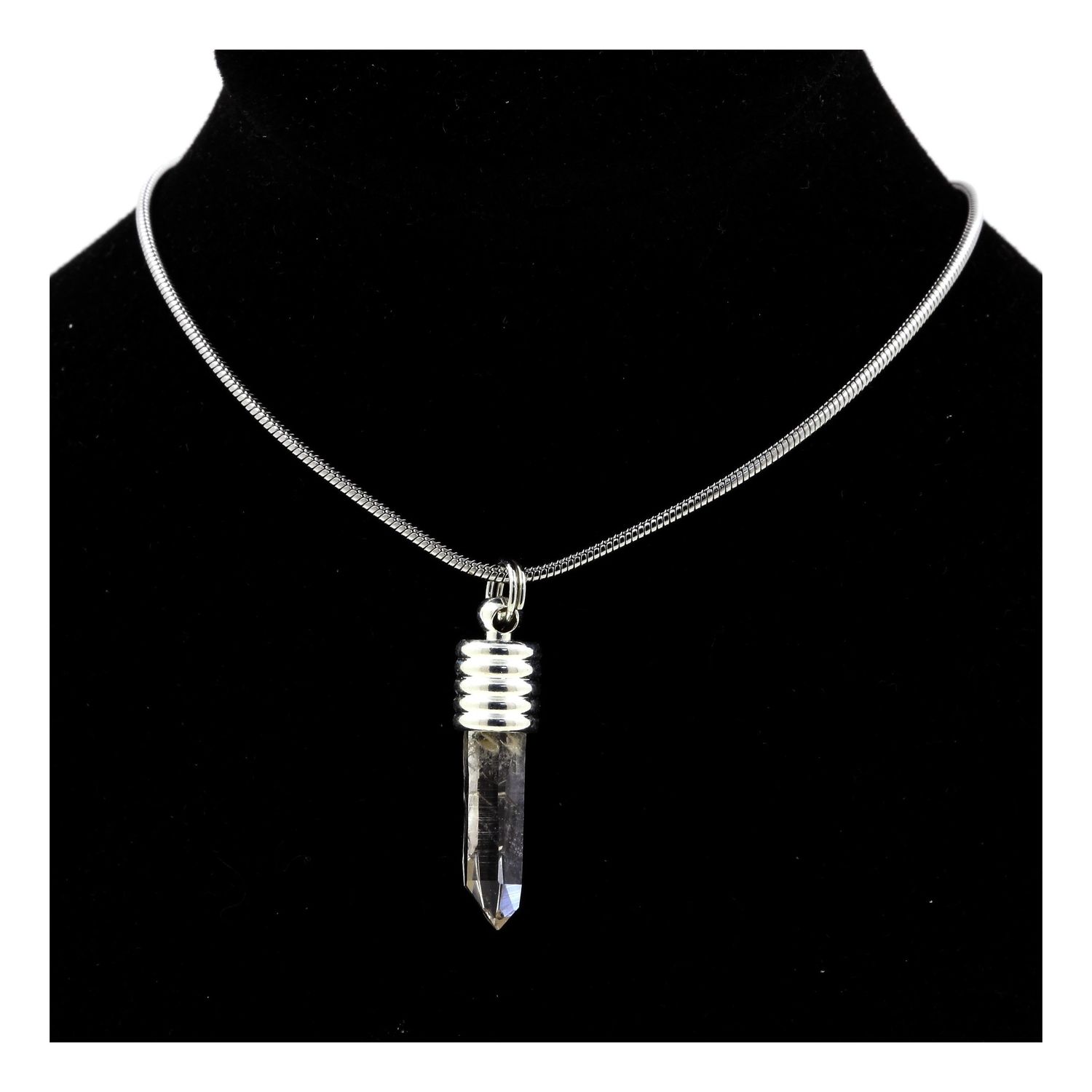 Collier Quartz cristal de roche + chaine en acier inoxydable longueur 40, 45, 50, 55, 60, 70, 80, 90 cm au choix. Quartz en provenance de La Gardette Mine, mine à Giraud, Bourg d'Oisans, Isère, France
