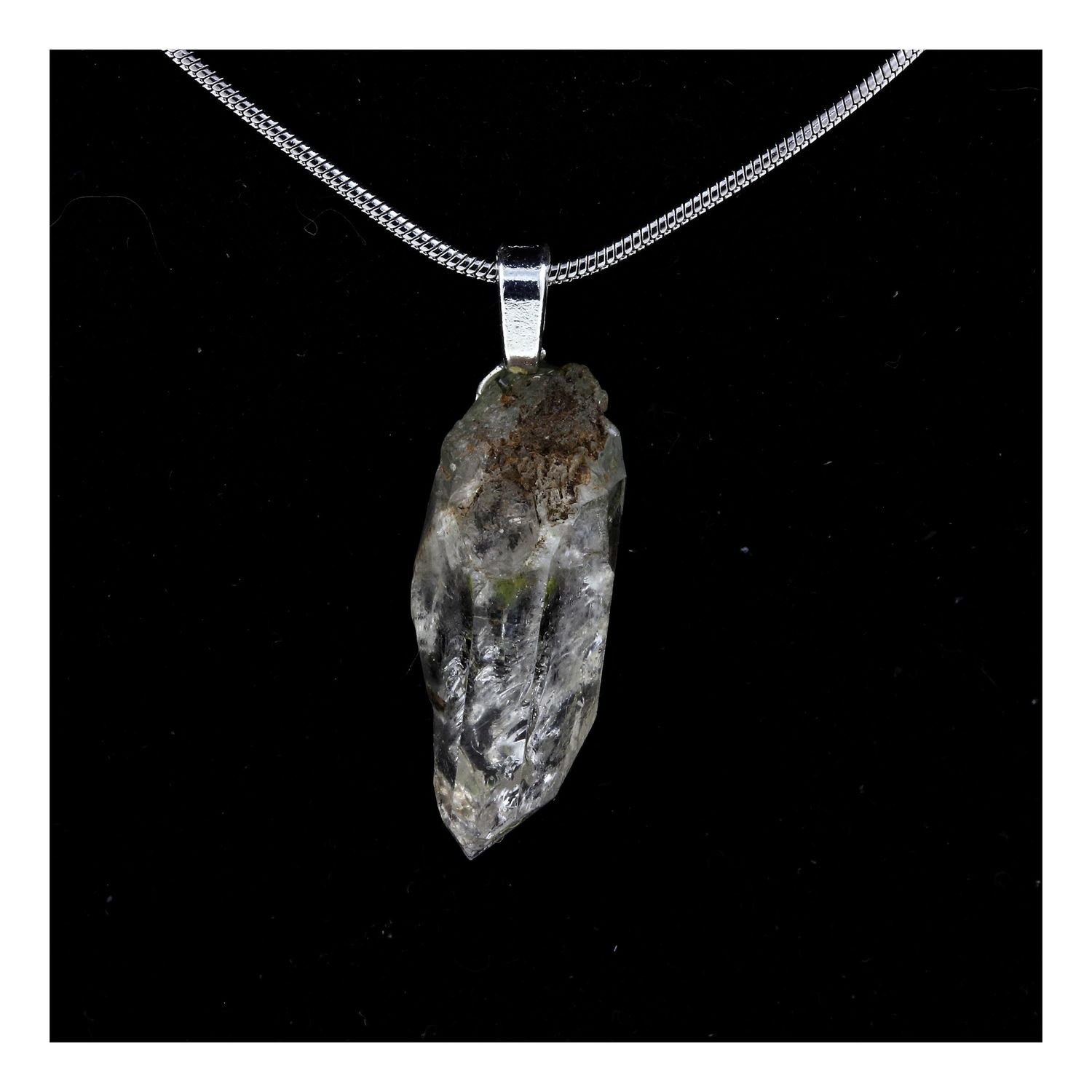 Collier Quartz Diamant à inclusions de pétrole (Fluorescent sous UV) brut + chaine en acier inoxydable longueur 40, 45, 50, 55, 60, 70, 80, 90 cm au choix. Quartz en provenance de Balochistan, Pakistan