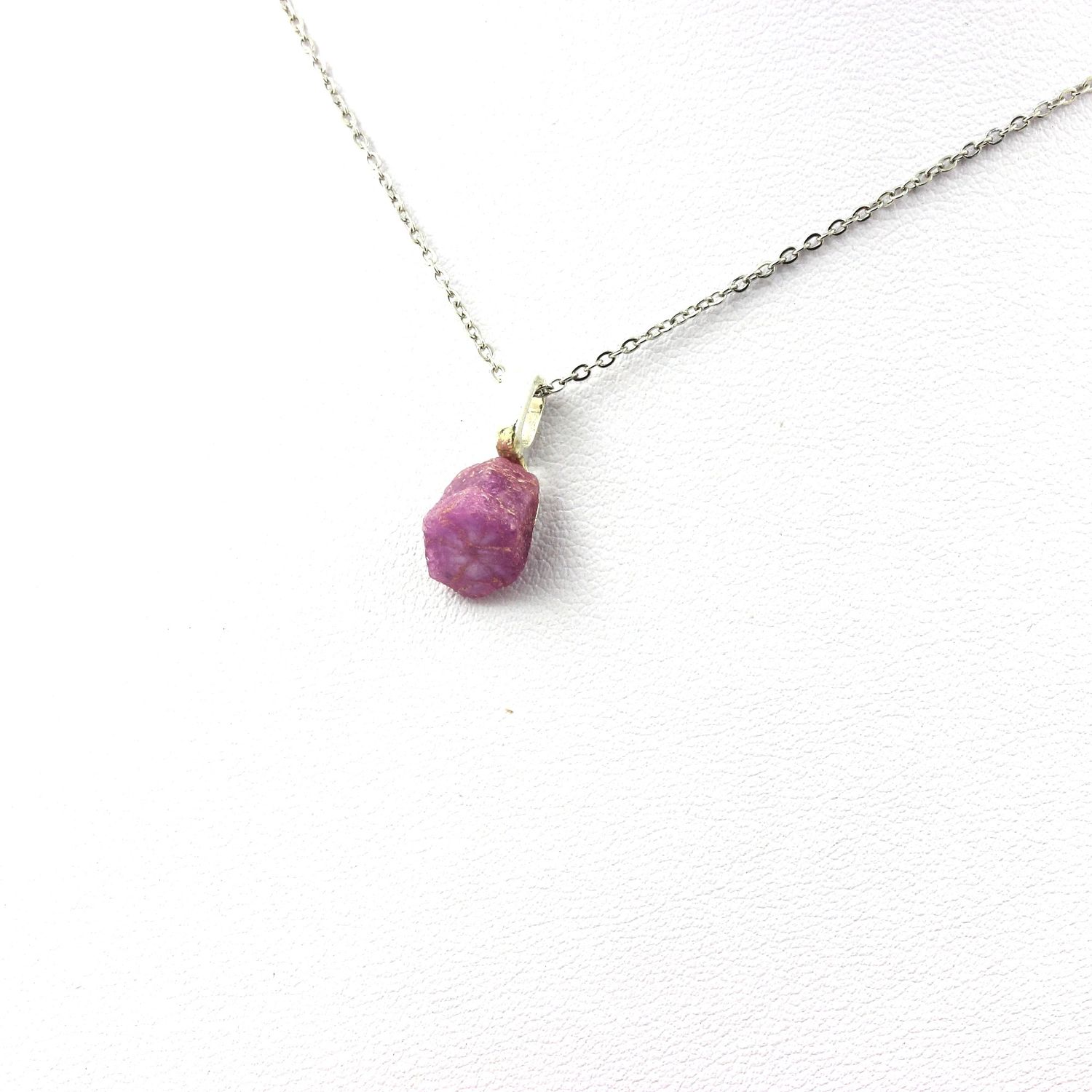 Collier Rubis brut + chaine en acier inoxydable longueur 40, 45, 50, 55, 60, 70, 80, 90 cm au choix. Rubis en provenance de Kiteto District, Manyara Region, Tanzanie