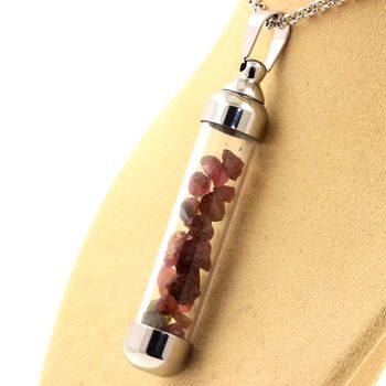 Dimensions : 60 x 10 mm - Pendentif en acier inoxydable et verre flotté avec des pierres brutes naturelles.