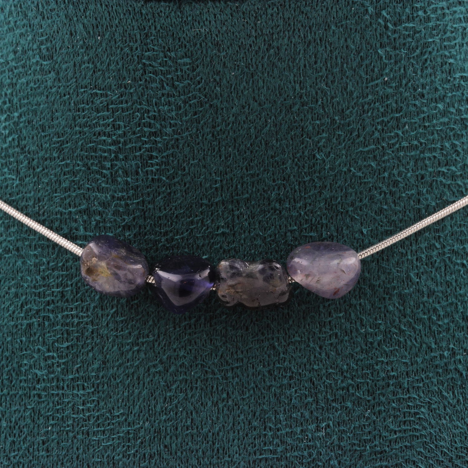 Cordierite Iolite from Madagascar 4 beads necklace. Stainless steel chain