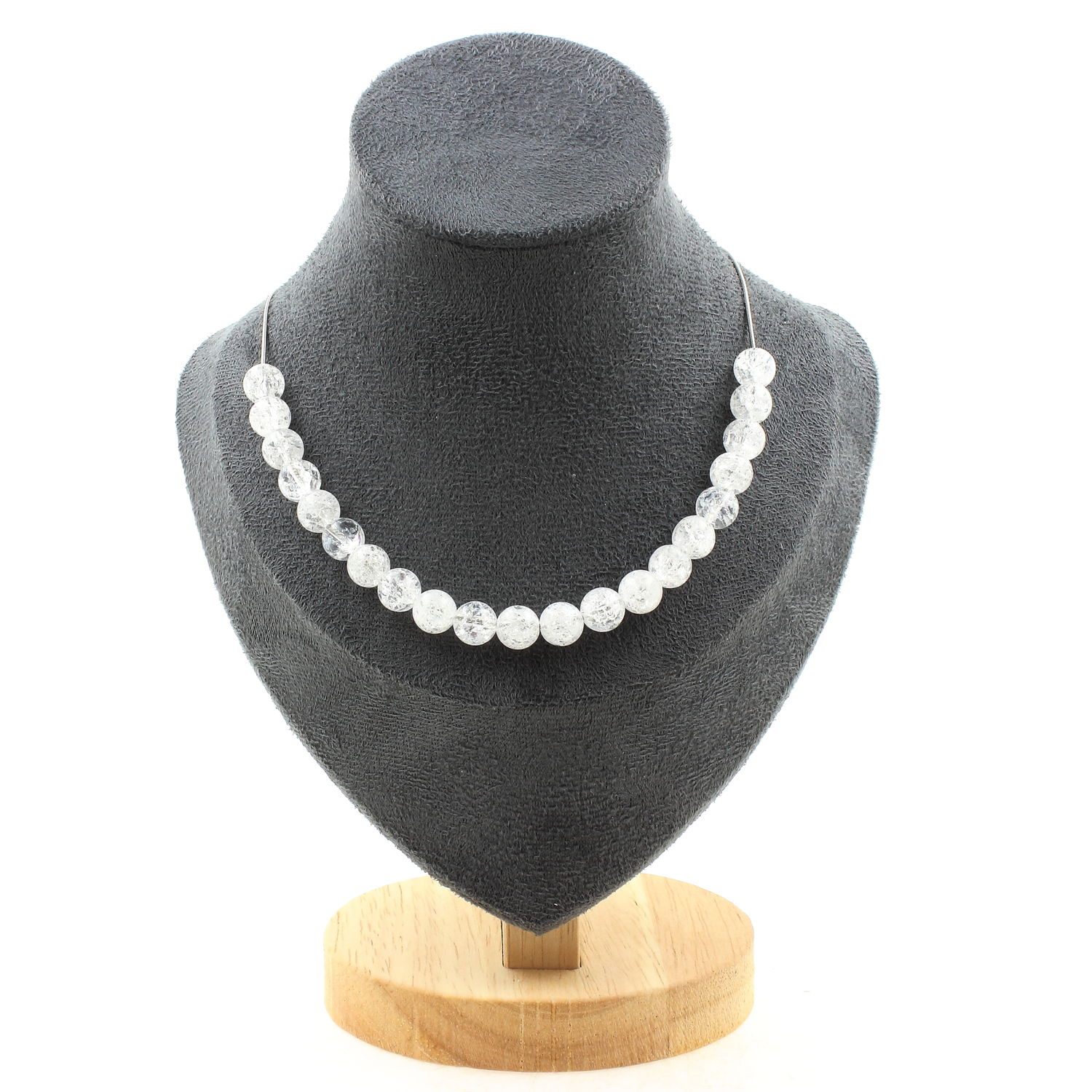 Cracked Quartz from Brazil 8 mm 20 beads necklace, stainless steel chain length 45 cm. We can make it to your length on request . Made in France in our A Bijoux workshop. Delivered in a box pouch. Necklace for women, men, children. Discover more than 1000 models of necklaces made by the A Bijoux brand with new arrivals every day.