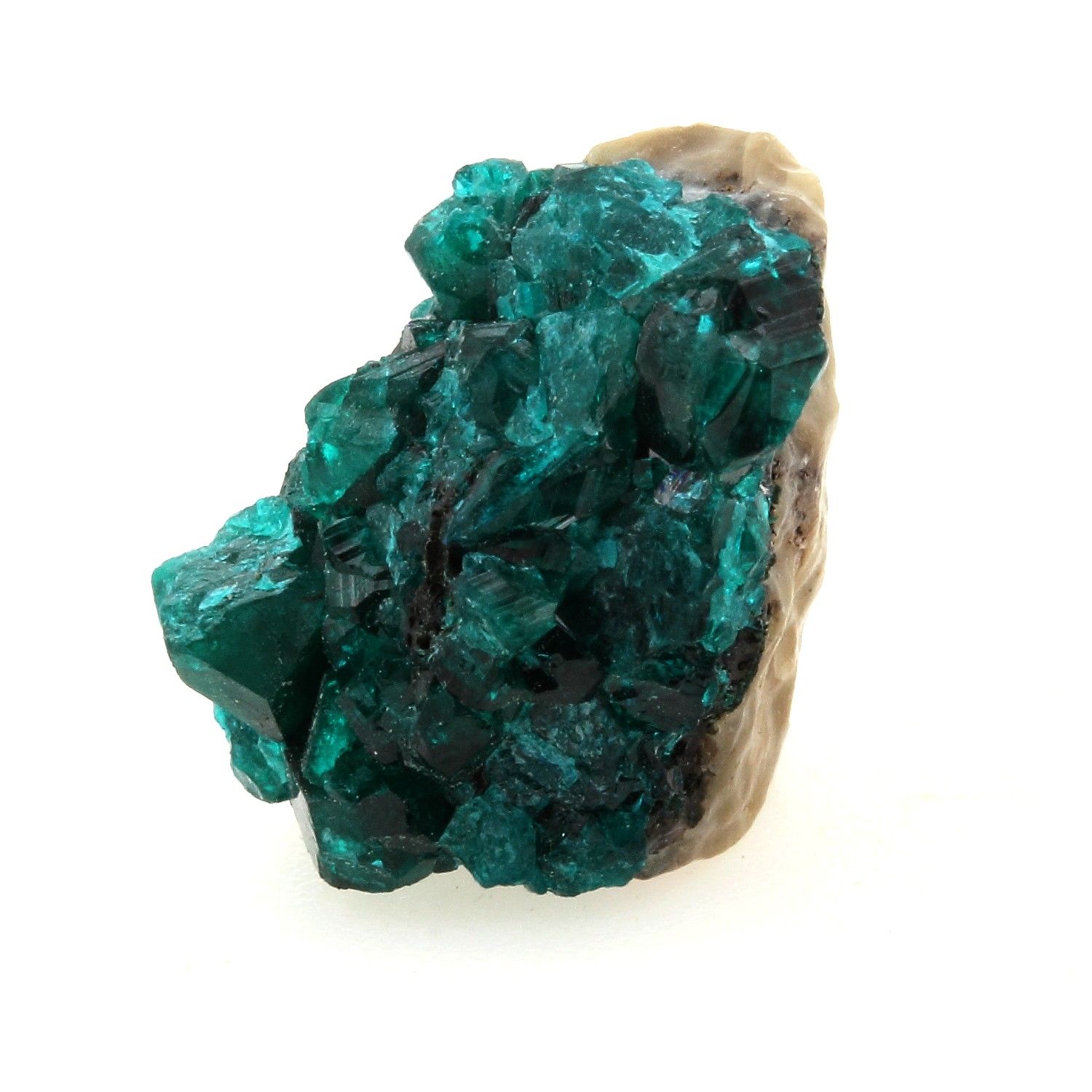 Dioptase en provenance de Altyn-Tyube dioptase deposit (Altyn-Tube), Altyn-Tyube area, Bukhar-Zhyrau District, Karaganda, Kazakhstan. Localité type.