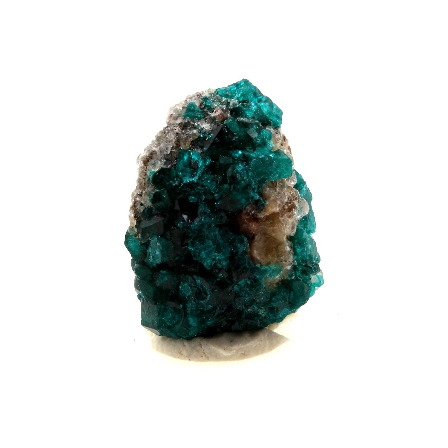 Dioptase en provenance de Altyn-Tyube dioptase deposit (Altyn-Tube), Altyn-Tyube area, Bukhar-Zhyrau District, Karaganda, Kazakhstan. Localité type.