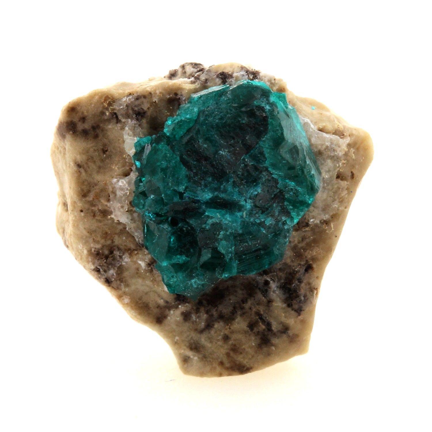 Dioptase en provenance de Altyn-Tyube dioptase deposit (Altyn-Tube), Altyn-Tyube area, Bukhar-Zhyrau District, Karaganda, Kazakhstan. Localité type.