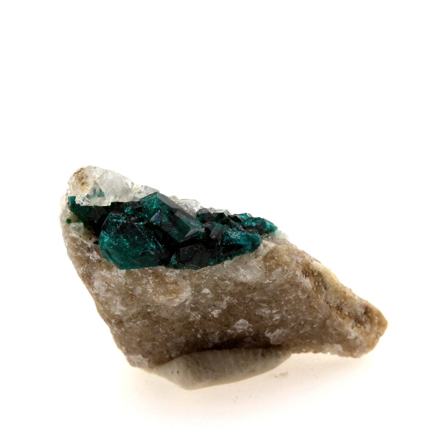 Dioptase en provenance de Altyn-Tyube dioptase deposit (Altyn-Tube), Altyn-Tyube area, Bukhar-Zhyrau District, Karaganda, Kazakhstan. Localité type.