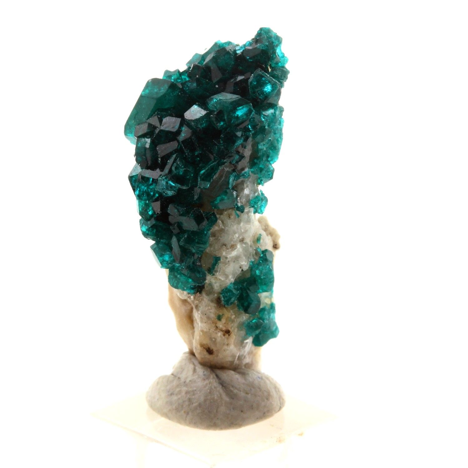 Dioptase en provenance de Altyn-Tyube dioptase deposit (Altyn-Tube), Altyn-Tyube area, Bukhar-Zhyrau District, Karaganda, Kazakhstan. Localité type.