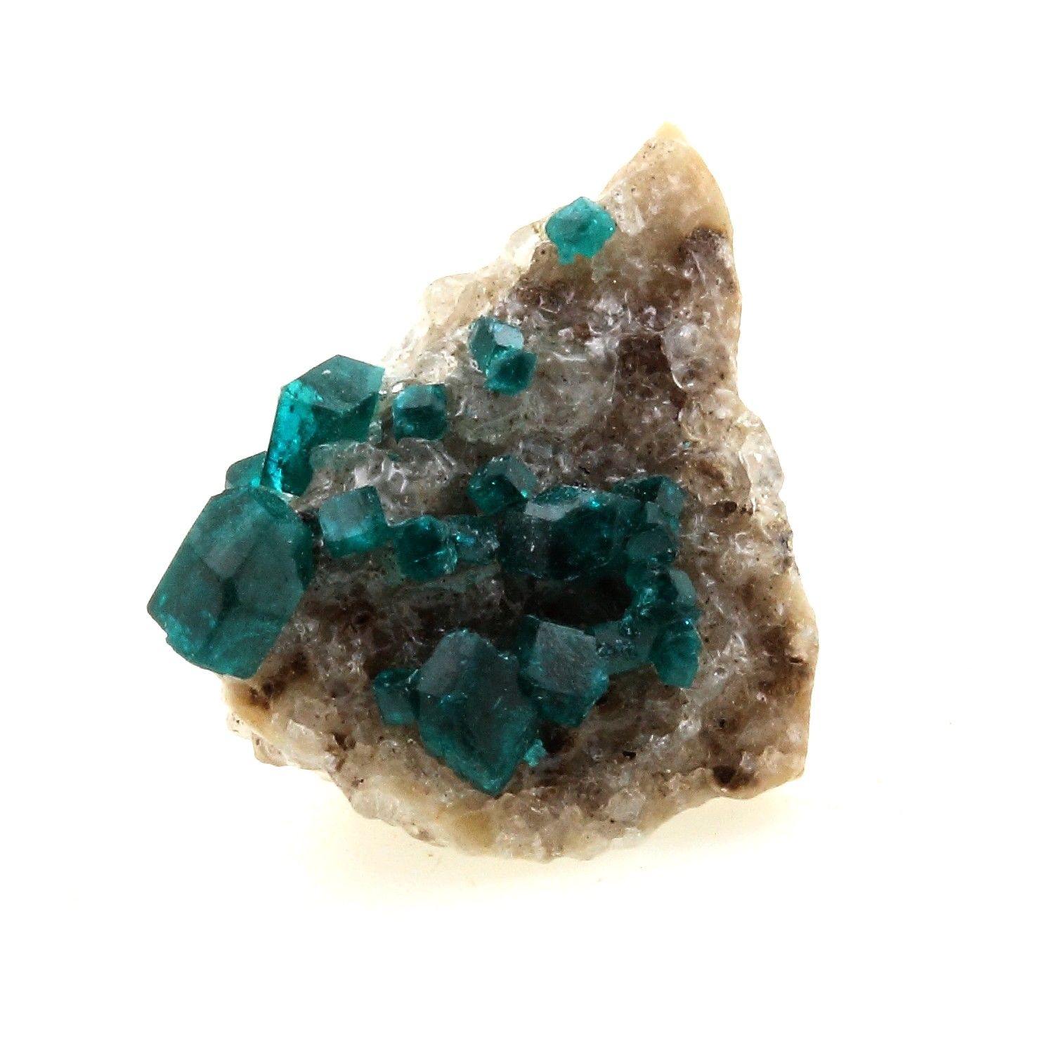 Dioptase en provenance de Altyn-Tyube dioptase deposit (Altyn-Tube), Altyn-Tyube area, Bukhar-Zhyrau District, Karaganda, Kazakhstan. Localité type.