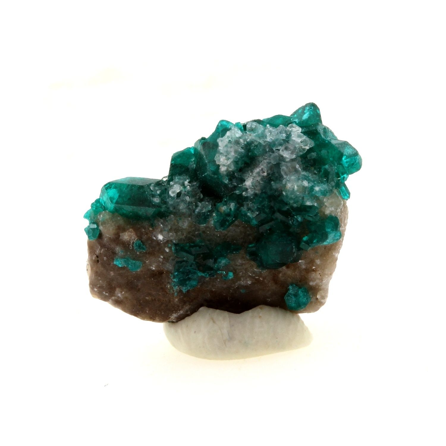 Dioptase en provenance de Altyn-Tyube dioptase deposit (Altyn-Tube), Altyn-Tyube area, Bukhar-Zhyrau District, Karaganda, Kazakhstan. Localité type.