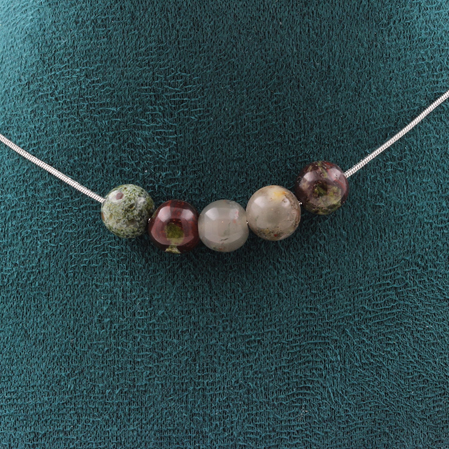 Dragon Blood Jasper 8 mm 5 beads necklace. Stainless steel chain