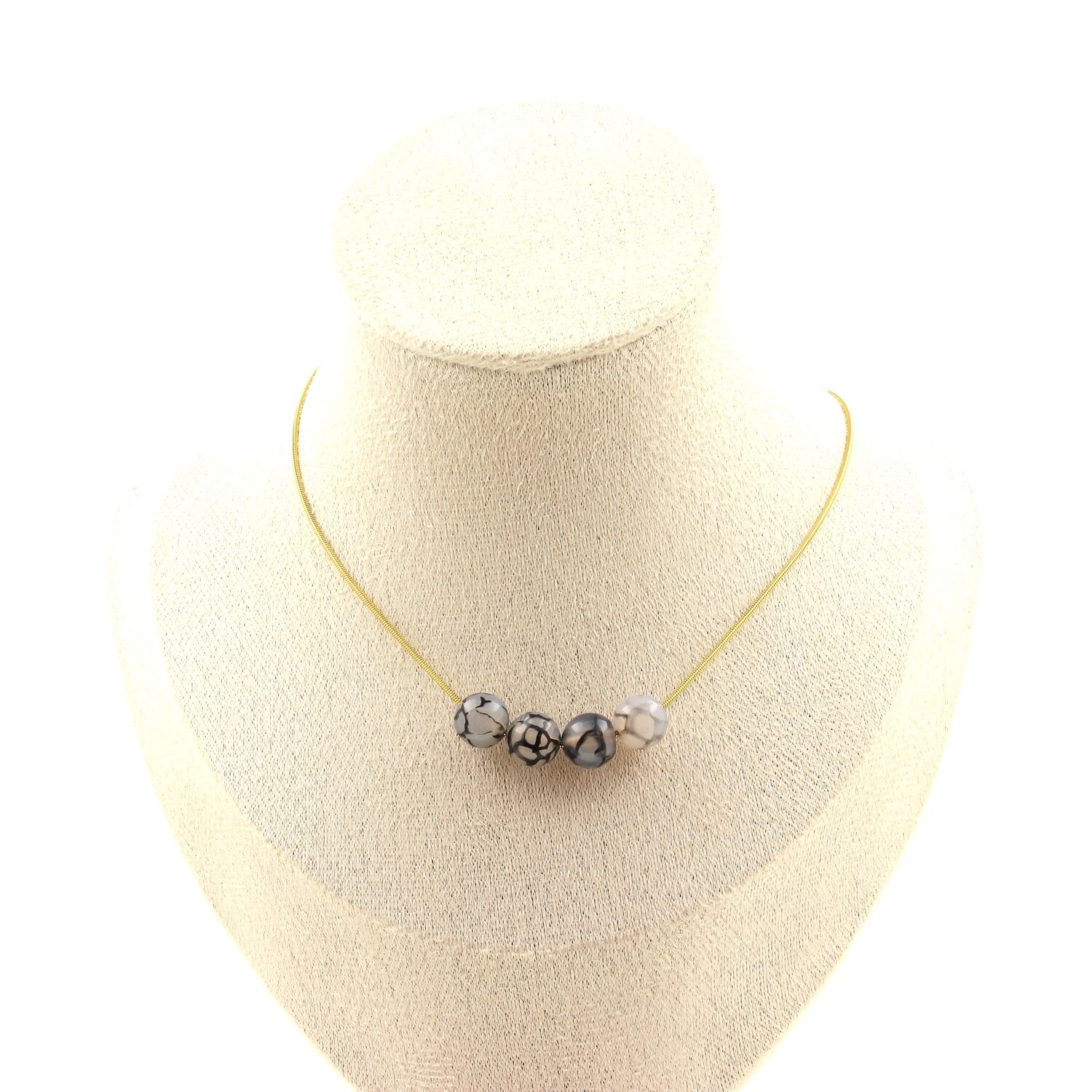 Dragon vein Agate 4 beads 8 mm necklace. Golden stainless steel chain