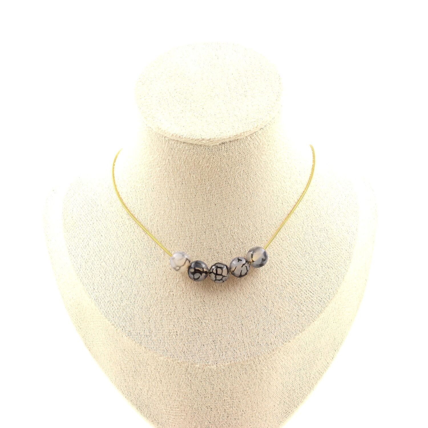 Dragon vein Agate 5 beads 8 mm necklace. Golden stainless steel chain