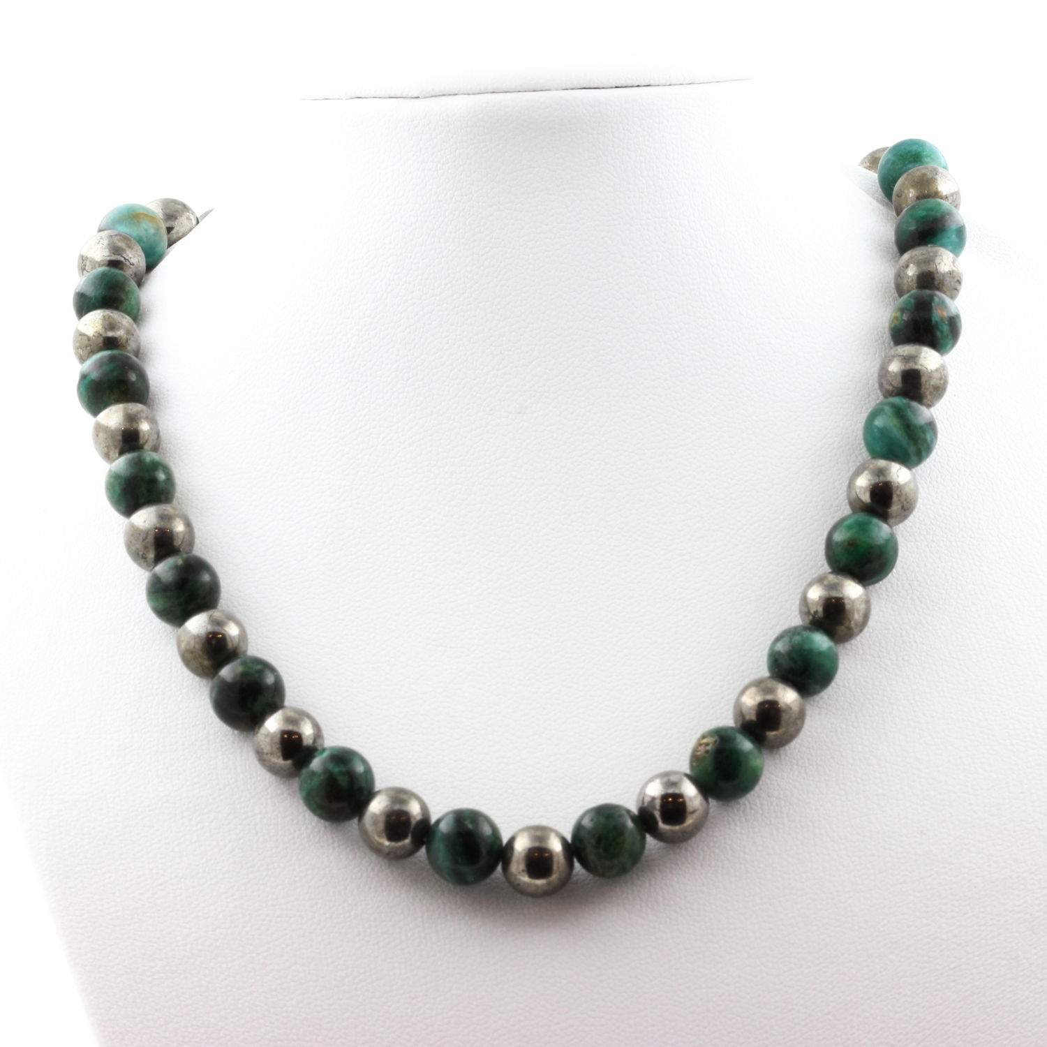 Emerald from Zambia Quality 3A + Pyrite from Spain 8 mm beaded necklace