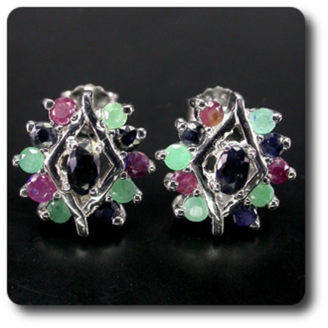 EMERALD RUBY & SAPPHIRE EARRINGS