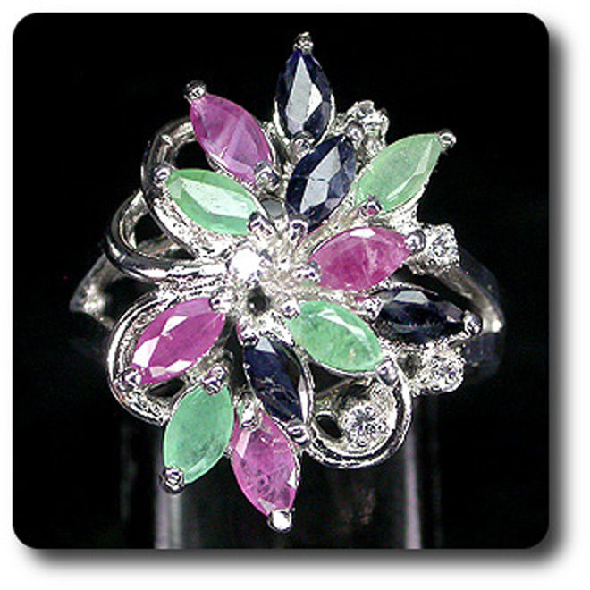 Gemstones Natural Emerald, Ruby & Sapphire 5 x 2,5 mm origin Africa & Cubic Zirconia 1 to 1,5 mm