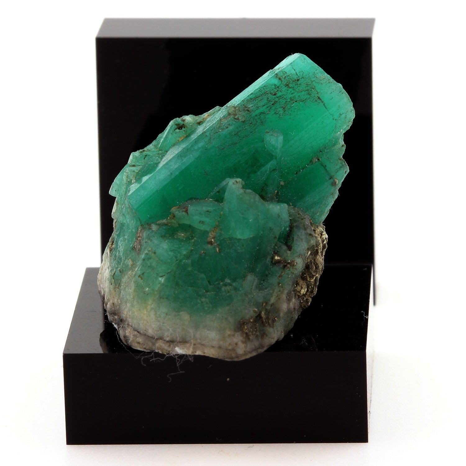 Emeraude ( 15 mm ) + Pyrite en provenance de Mun. de Muzo, Vasquez-Yacopí Mining District, Boyacá Department, Colombie.