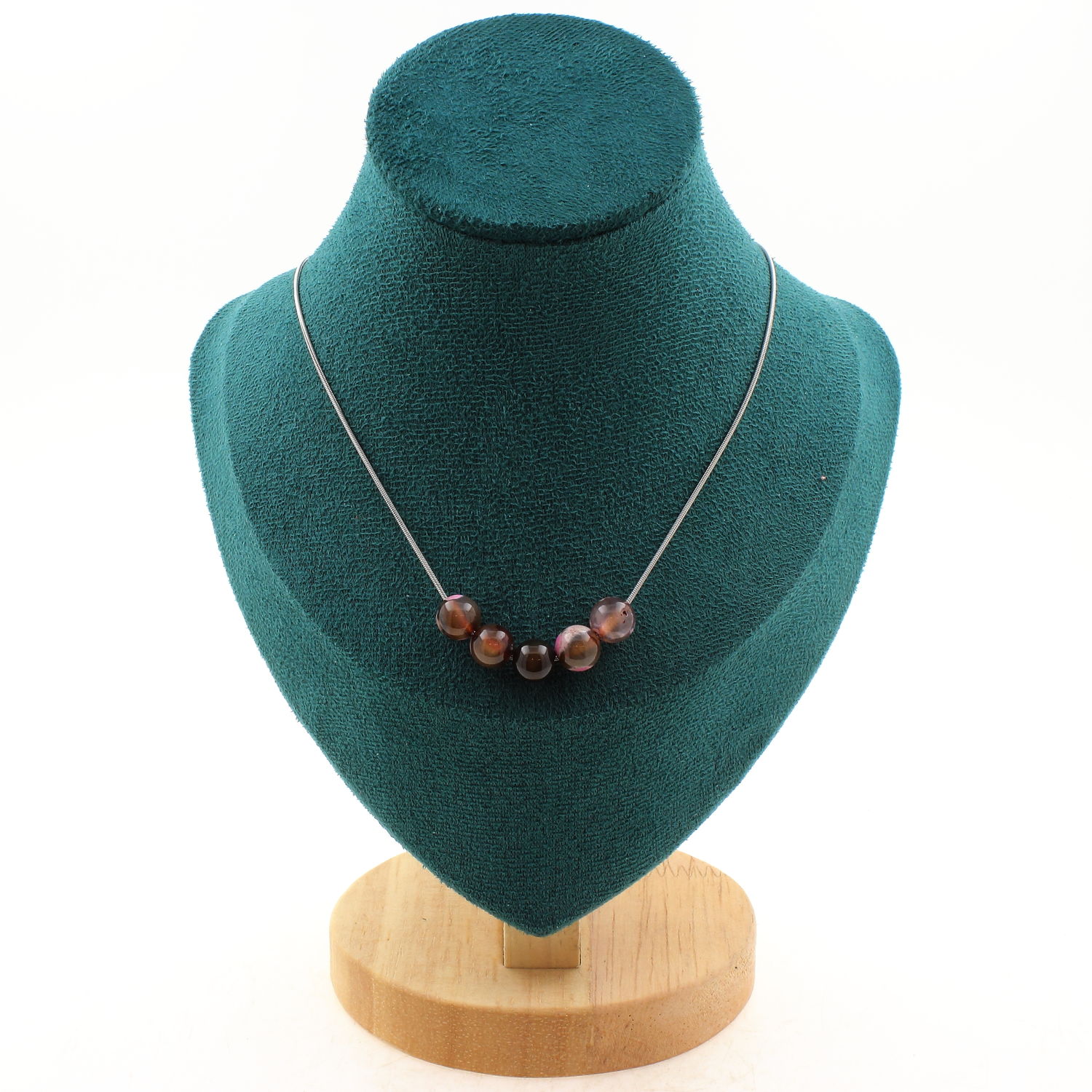 Fuchsia and brown Agate 5 beads necklace 8 mm, stainless steel chain length 45 cm. We can make it to your length on request . Made in France in our A Bijoux workshop. Delivered in a box pouch. Necklace for women, men, children. Discover more than 1000 models of necklaces made by the A Bijoux brand with new arrivals every day.