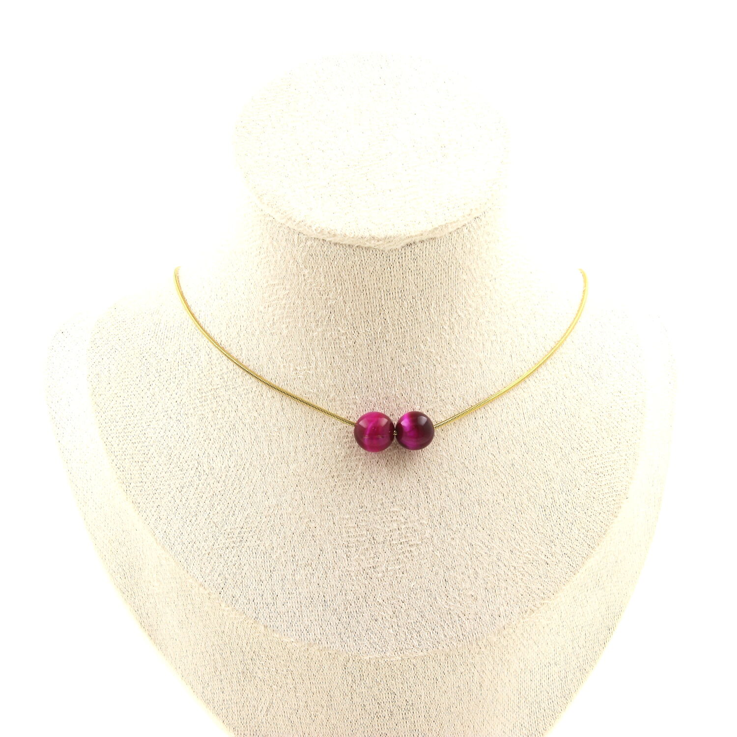 Fuschia Tiger's Eye 8 mm 2 beads necklace, golden stainless steel chain length 45 cm. We can make it to your length on request. Made in France in our A Bijoux workshop. Delivered in a box pouch. Necklace for women, men, children. Discover more than 1000 models of necklaces made by the A Bijoux brand with new arrivals every day.