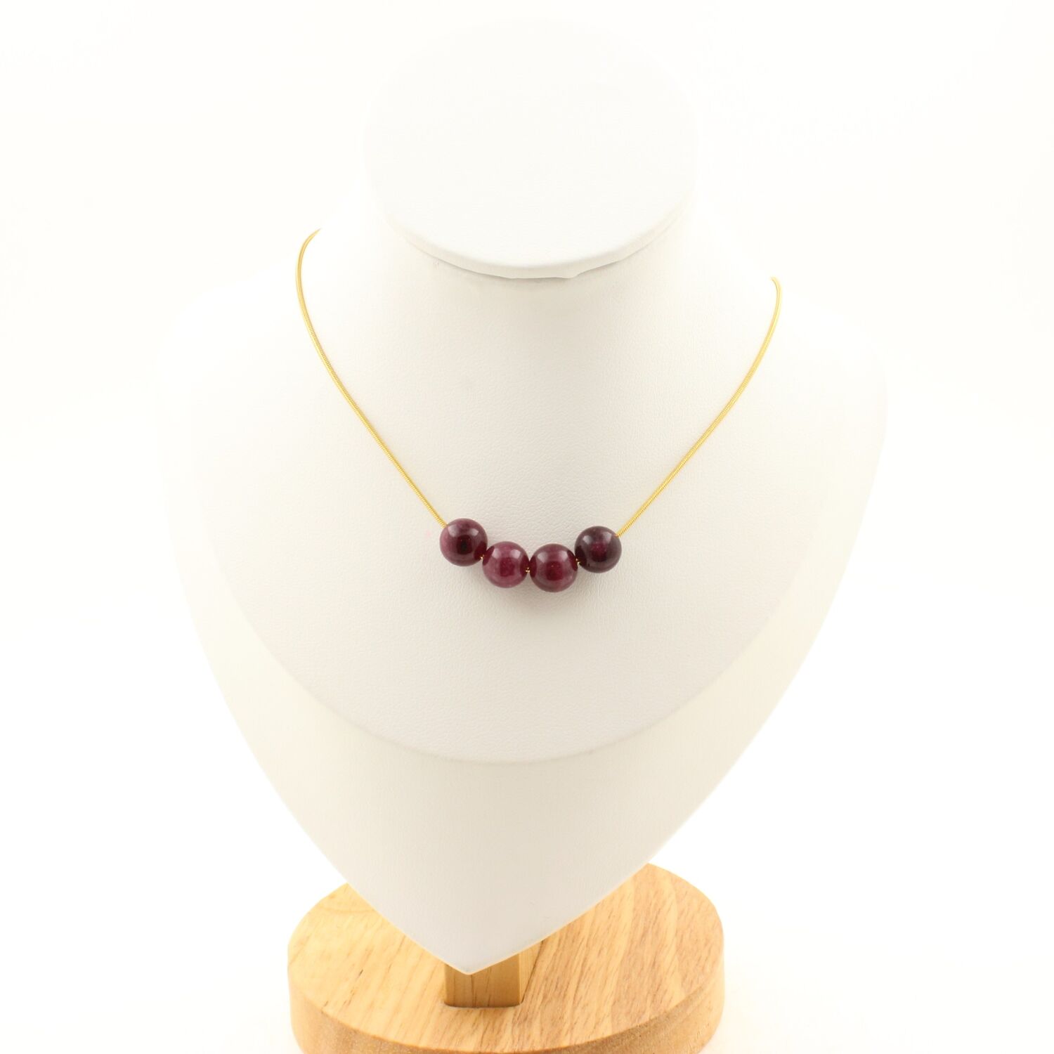 Garnet 8 mm 4 beads necklace. Golden Stainless steel chain