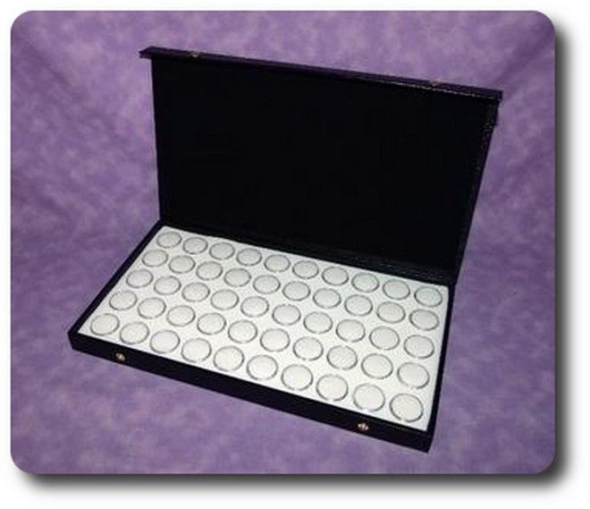 DESCRIPTION   Has 50 gem jars with white foam. White case measures 30 x 28 x 16 mm