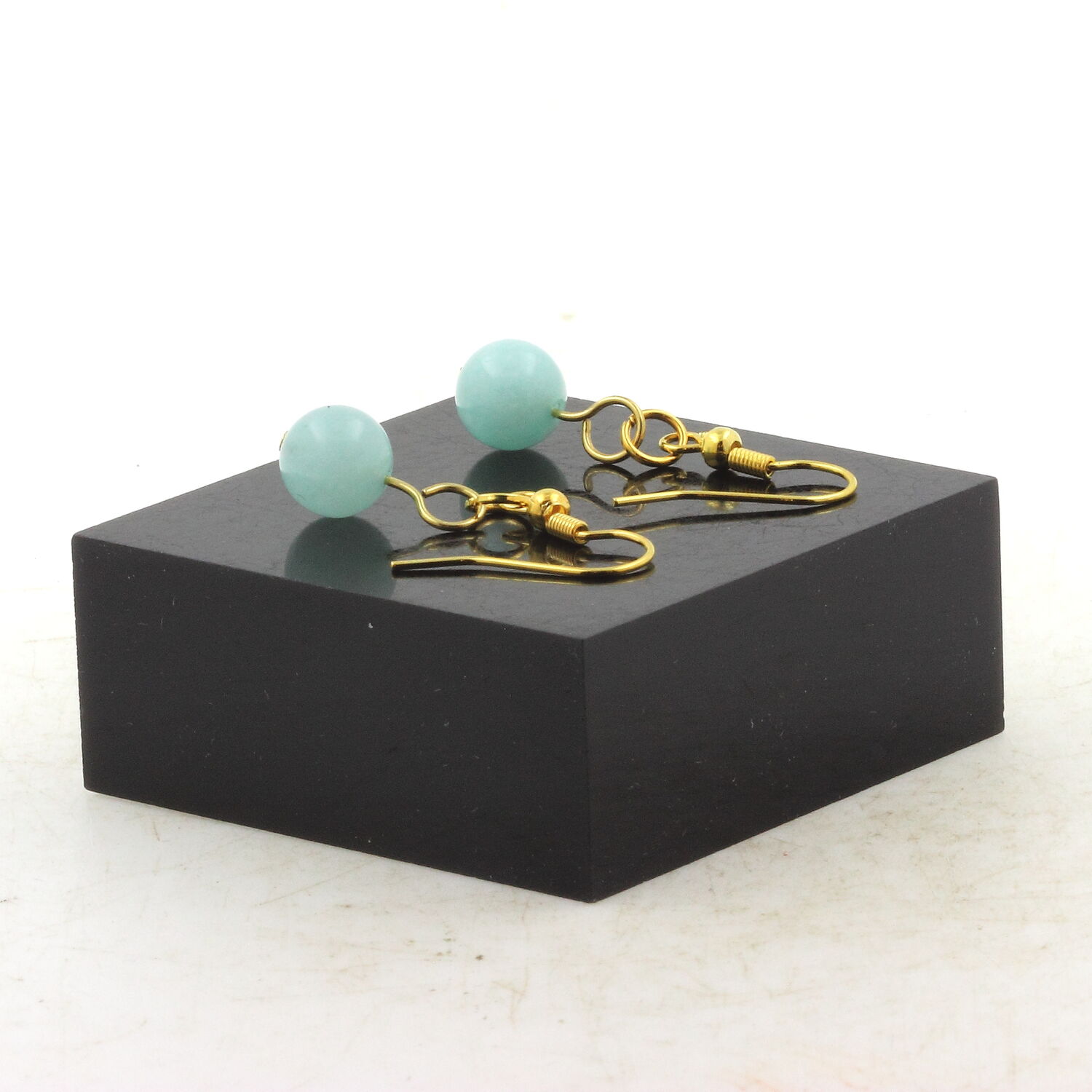 Golden Stainless steel hypoallergenic Earrings Amazonite 8 mm 1 Bead.