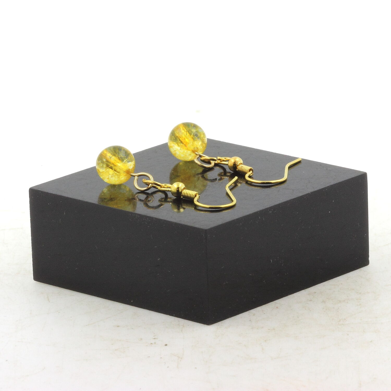Golden Stainless steel hypoallergenic Earrings Citrine 8 mm 1 Bead.