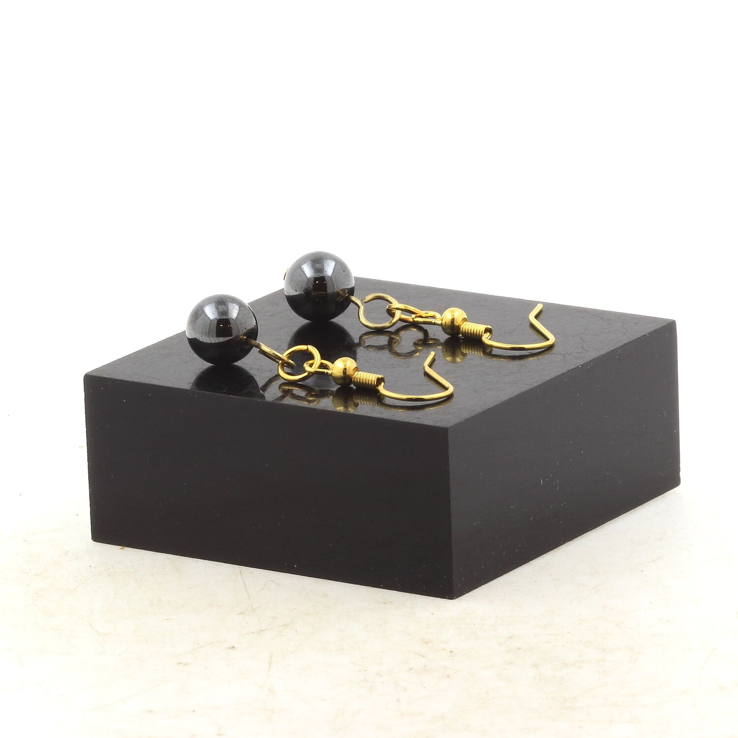 Golden stainless steel Earrings Hematite 8 mm 1 Bead.