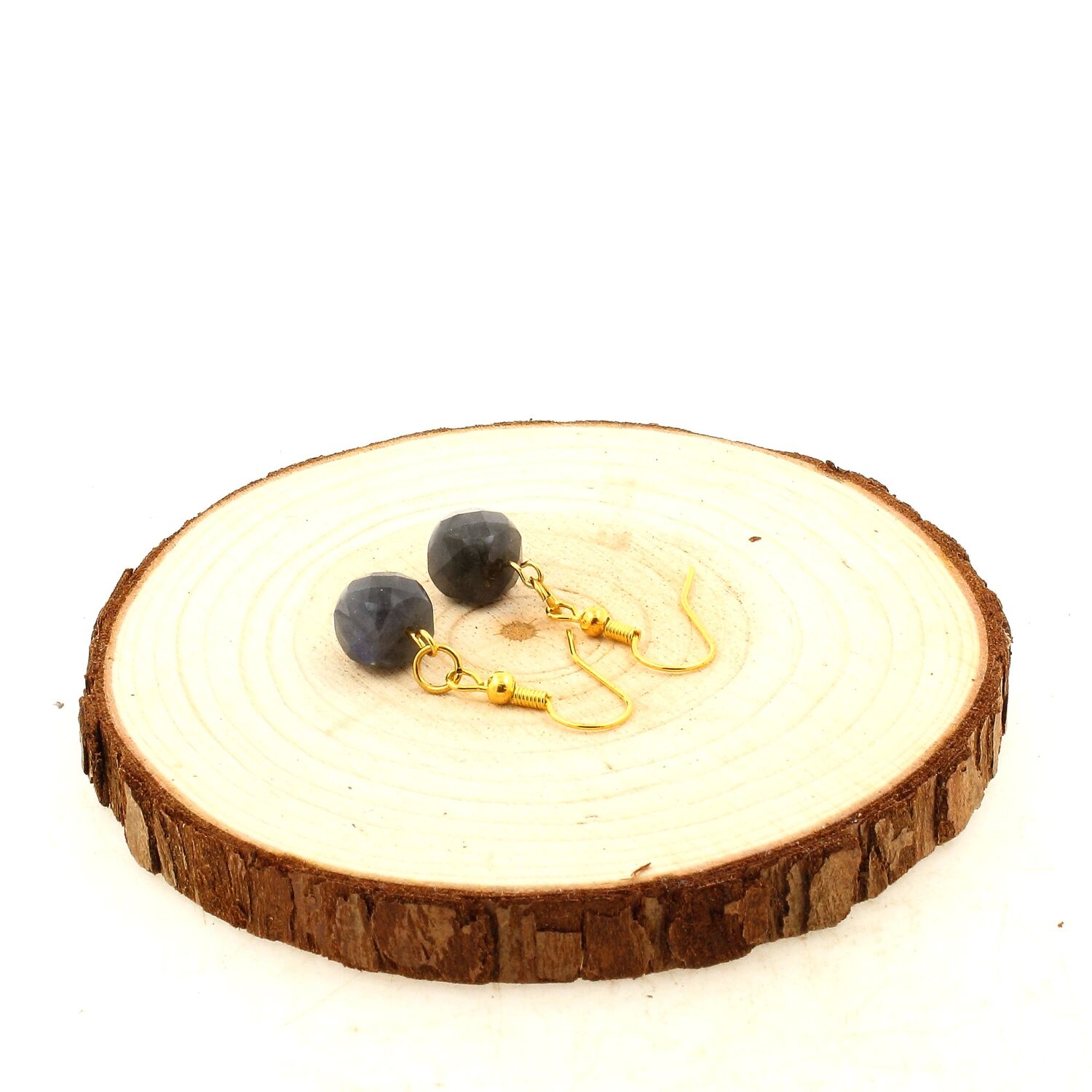 Golden Stainless steel hypoallergenic Earrings Labradorite 9mm faceted cube 1 Bead.