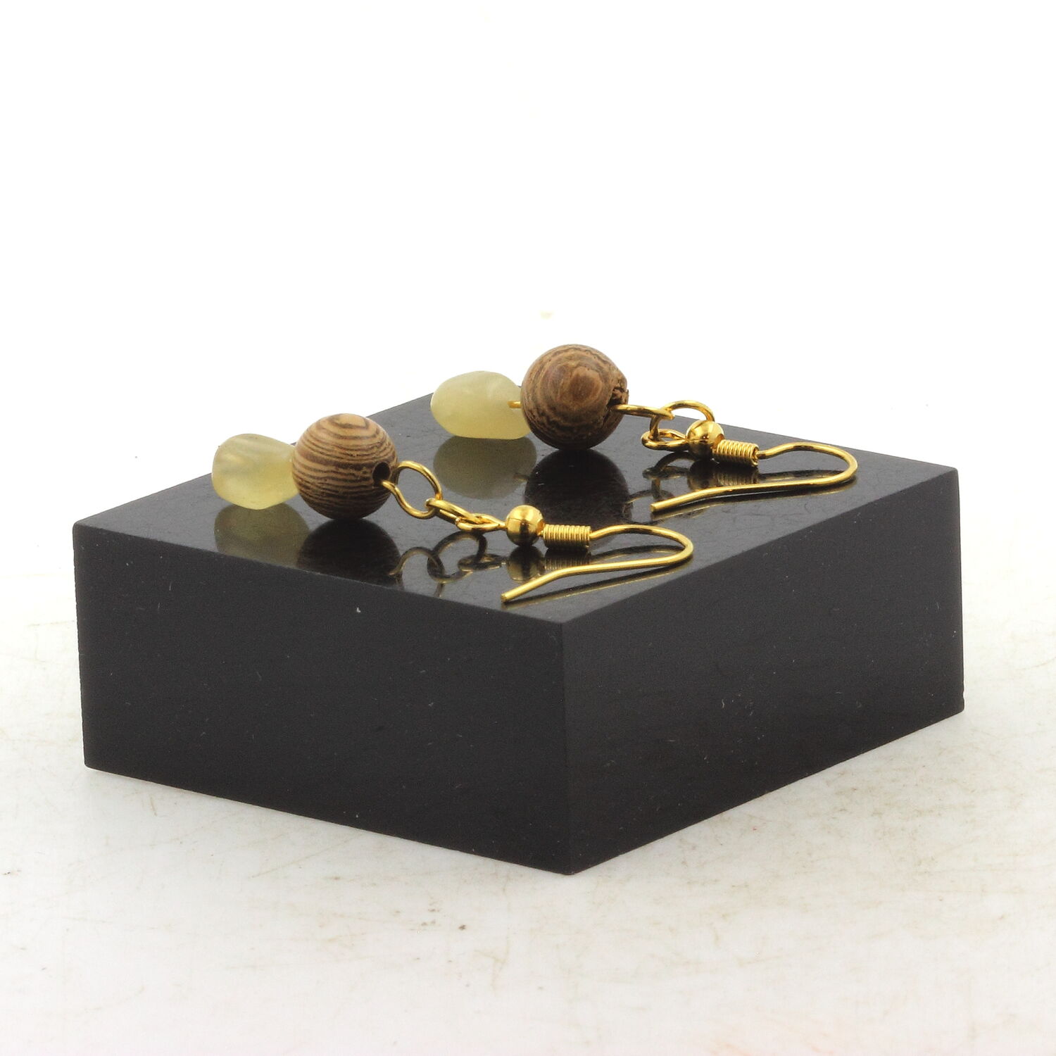 Golden Stainless steel hypoallergenic Earrings Yellow Calcite from the UK Freeform 5mm-8mm + wood 8 mm 2 Beads.