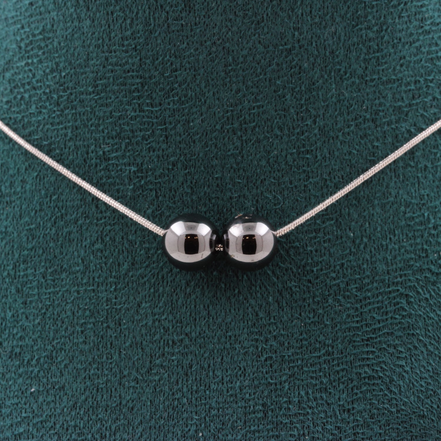 Hematite 8 mm 2 beads necklace. Stainless steel chain