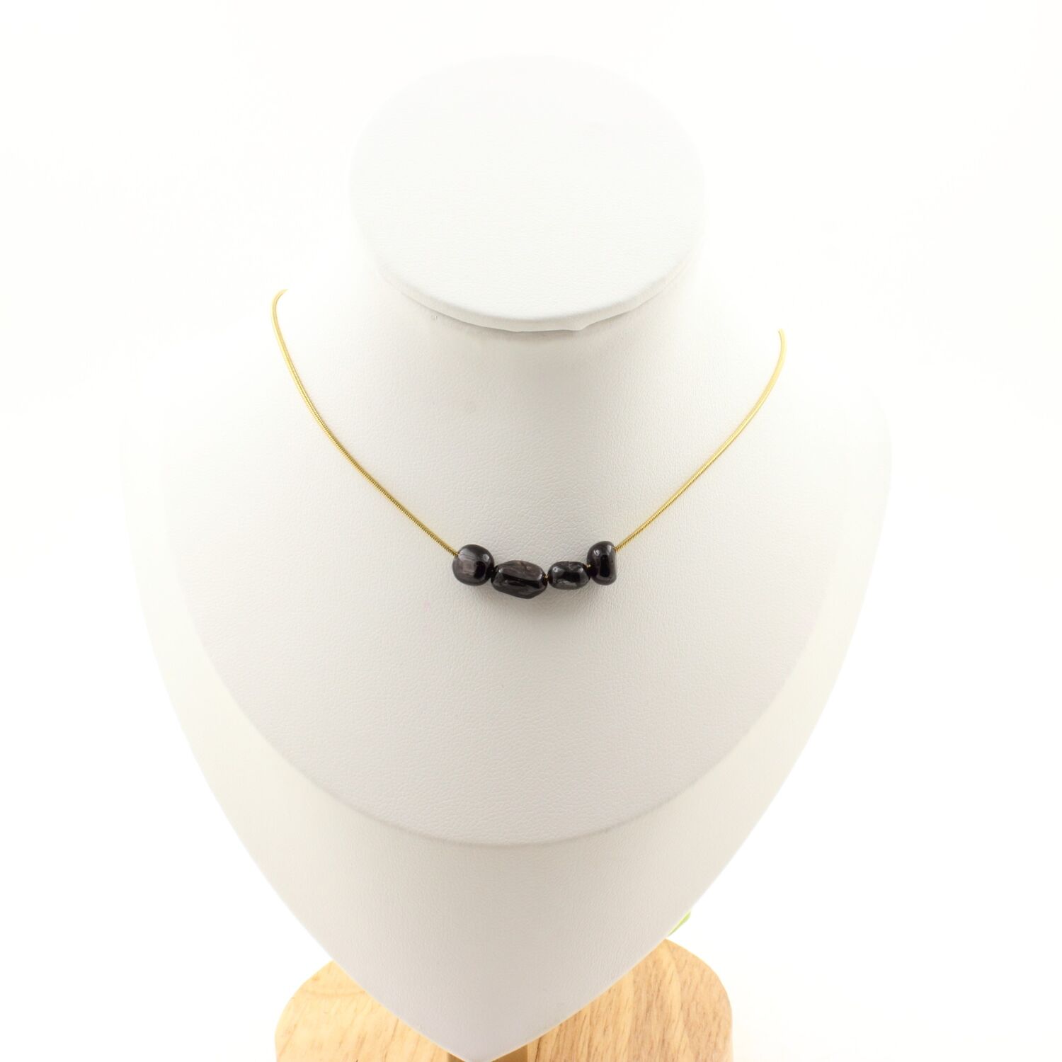Hypersthene from Egypt 4 beads necklace, golden stainless steel chain length 45 cm. We can make it to your length on request. Made in France in our A Bijoux workshop. Delivered in a box pouch. Necklace for women, men, children. Discover more than 1000 models of necklaces made by the A Bijoux brand with new arrivals every day.