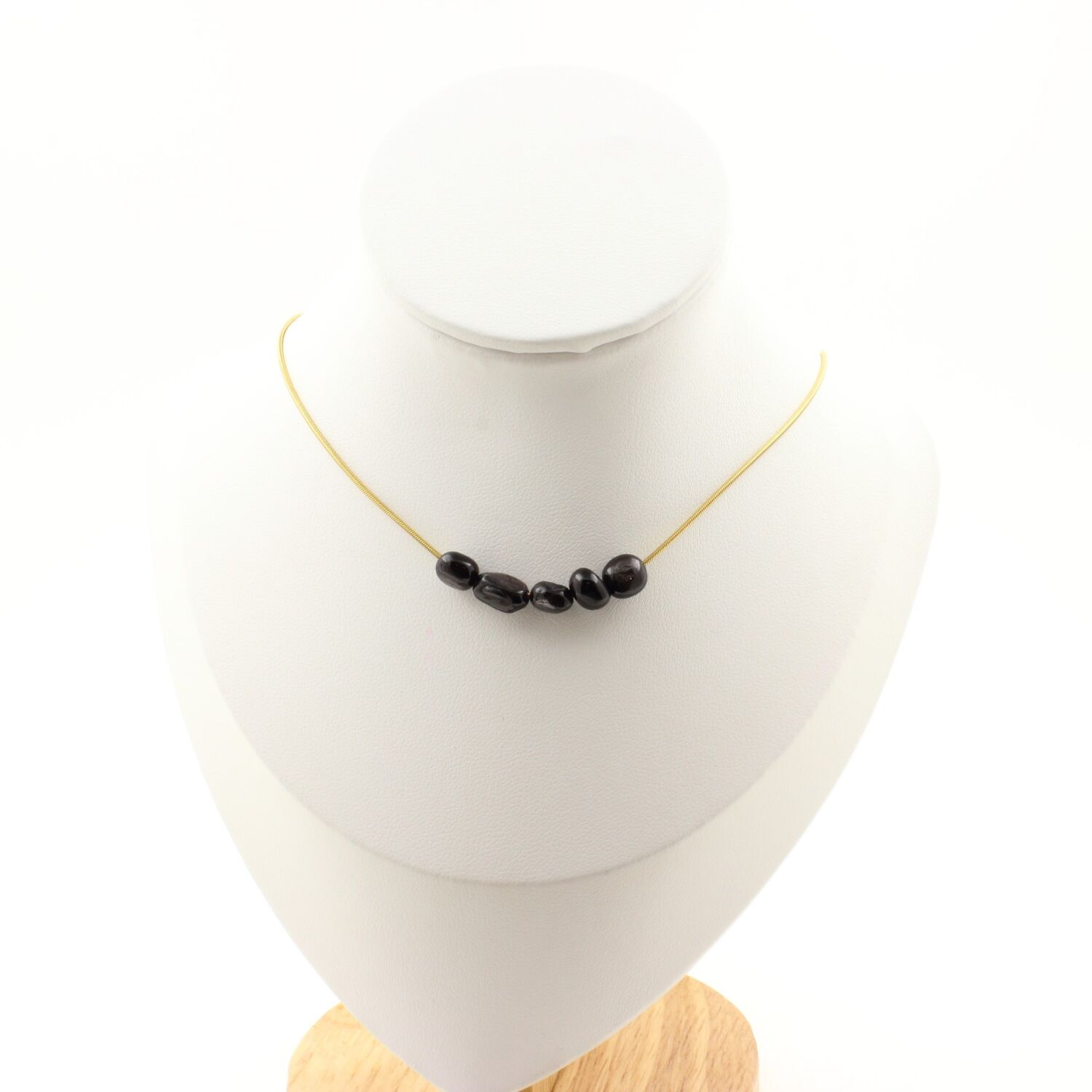 Hypersthene from Egypt 5 beads necklace, golden stainless steel chain length 45 cm. We can make it to your length on request. Made in France in our A Bijoux workshop. Delivered in a box pouch. Necklace for women, men, children. Discover more than 1000 models of necklaces made by the A Bijoux brand with new arrivals every day.