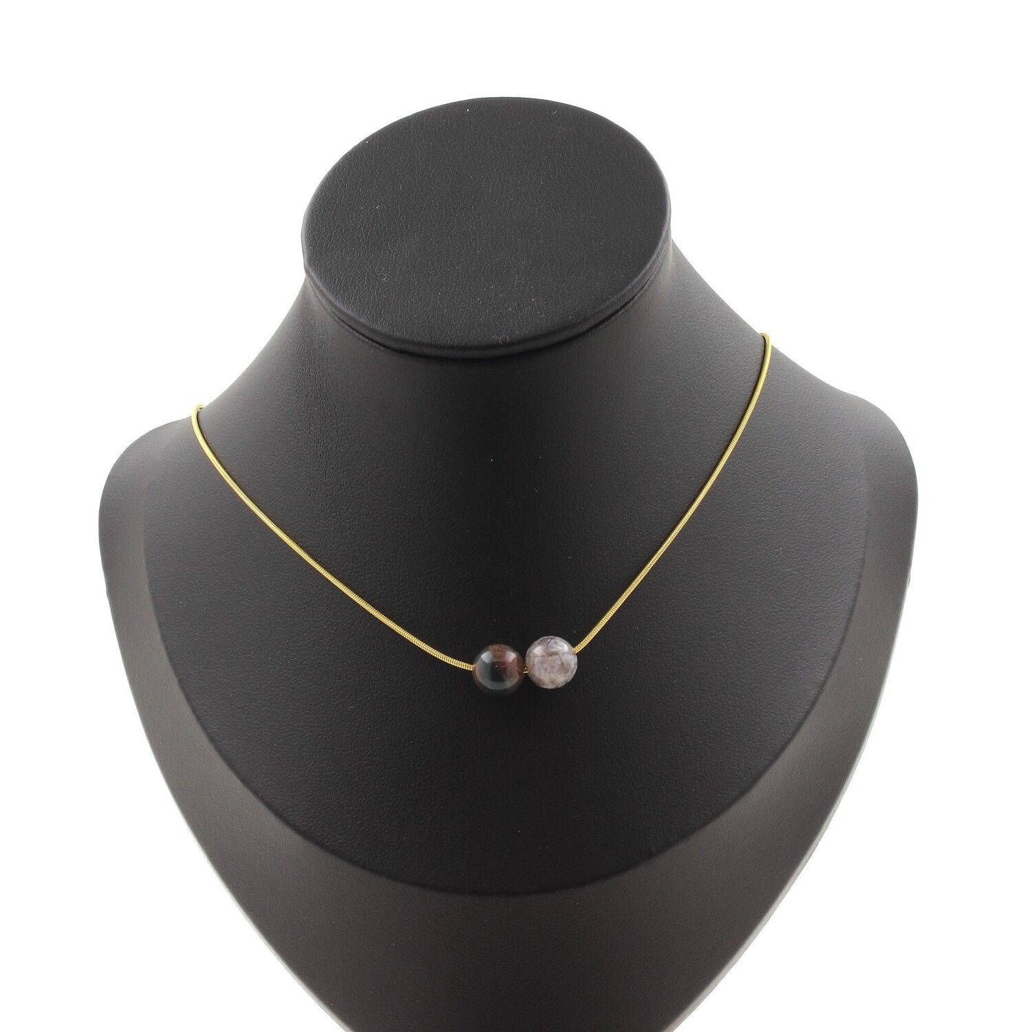 Indian Agate 2 beads necklace 8 mm, golden stainless steel chain length 45 cm. We can make it to your length on request. Made in France in our A Bijoux workshop. Delivered in a box pouch. Necklace for women, men, children.