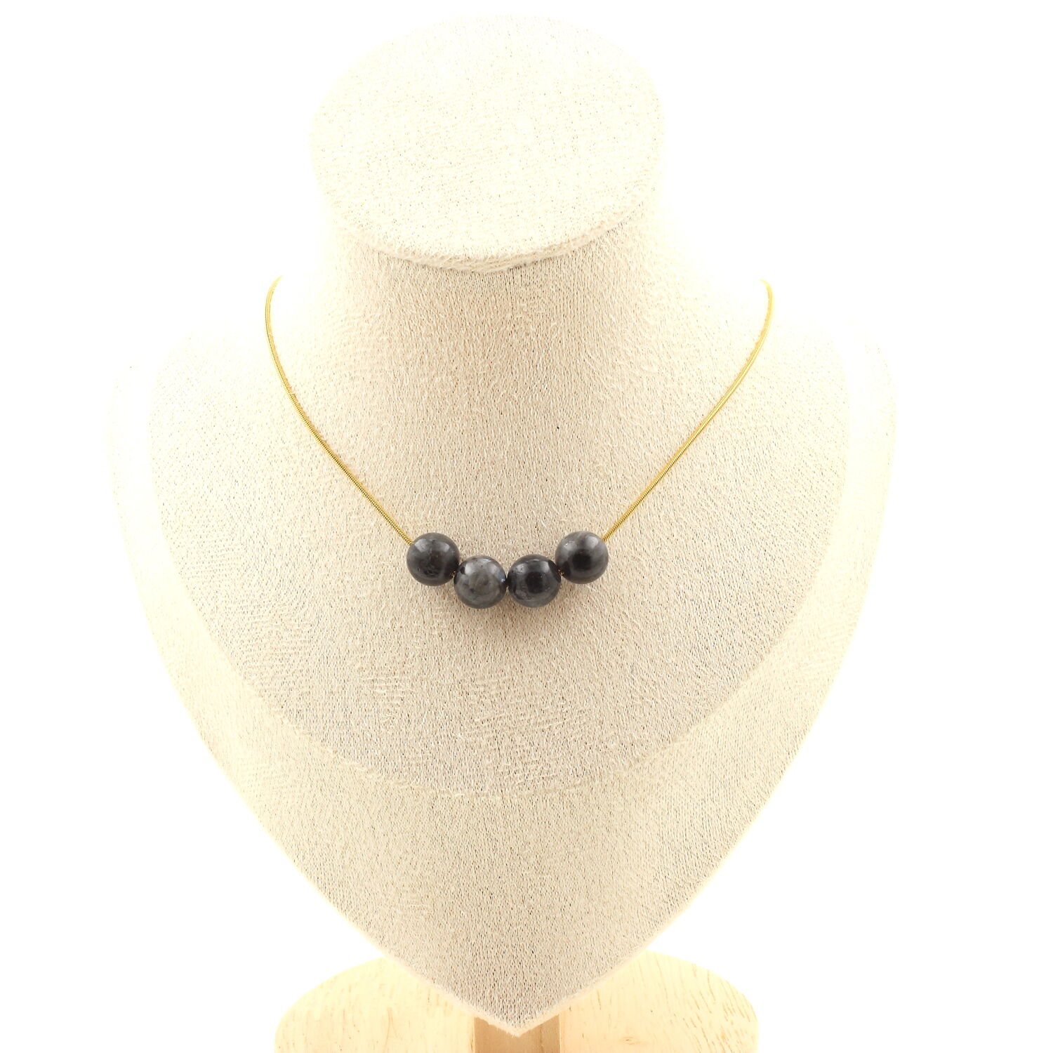 Labradorite 8mm 4 beads necklace. Golden stainless steel chain