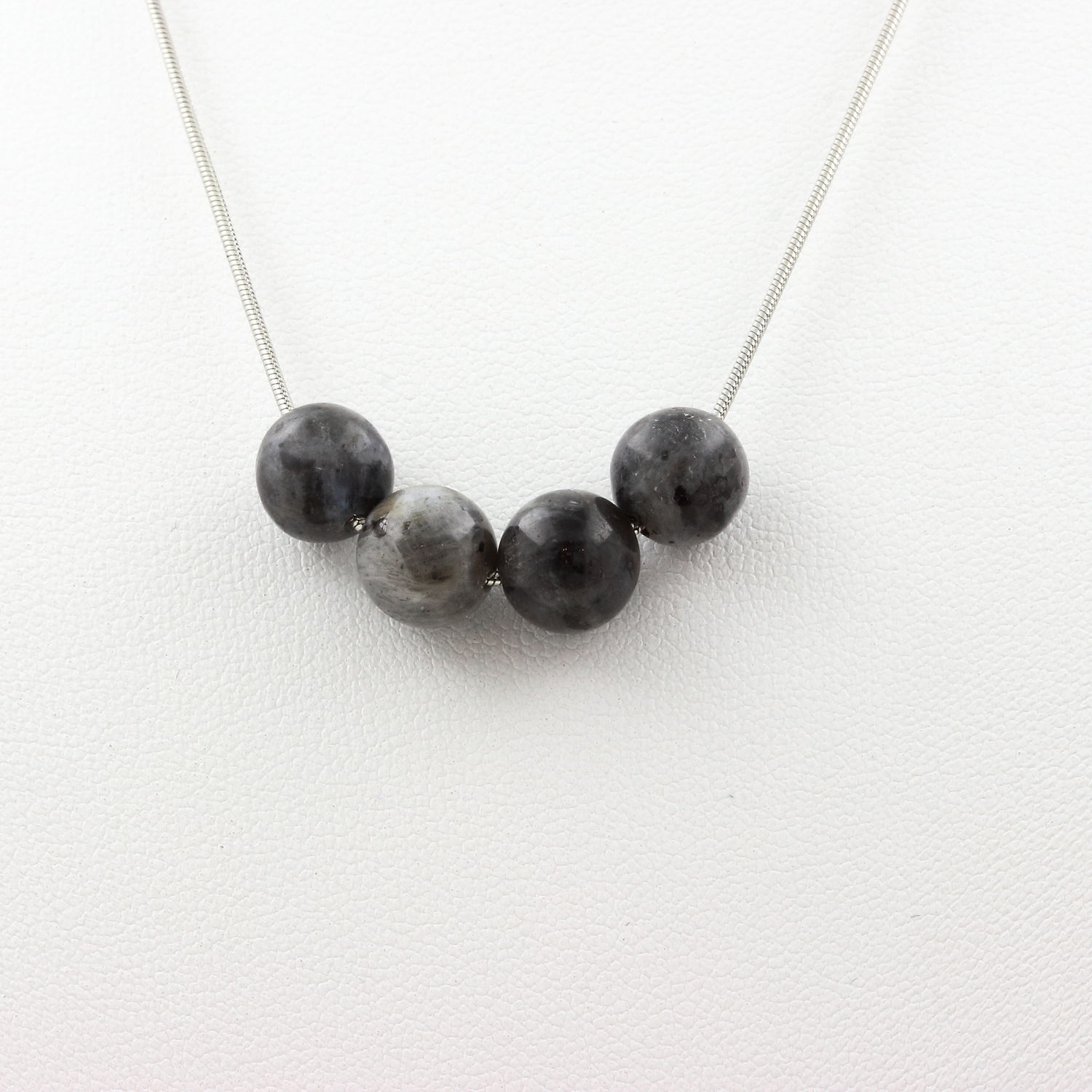 Labradorite 8mm 4 beads necklace. Stainless steel chain
