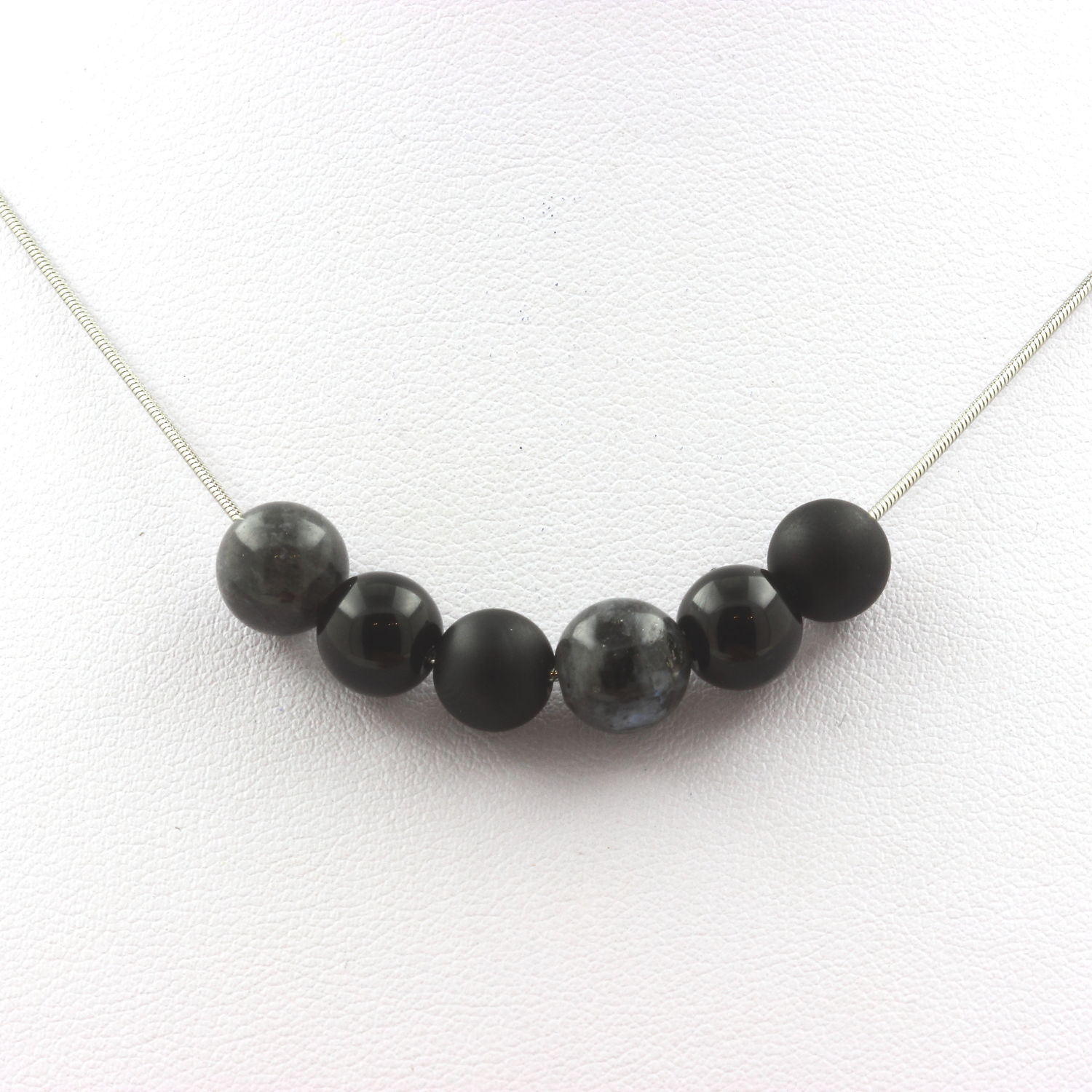 Labradorite + Black Agate + Matte Black Onyx 8 mm beaded necklace Stainless steel chain
