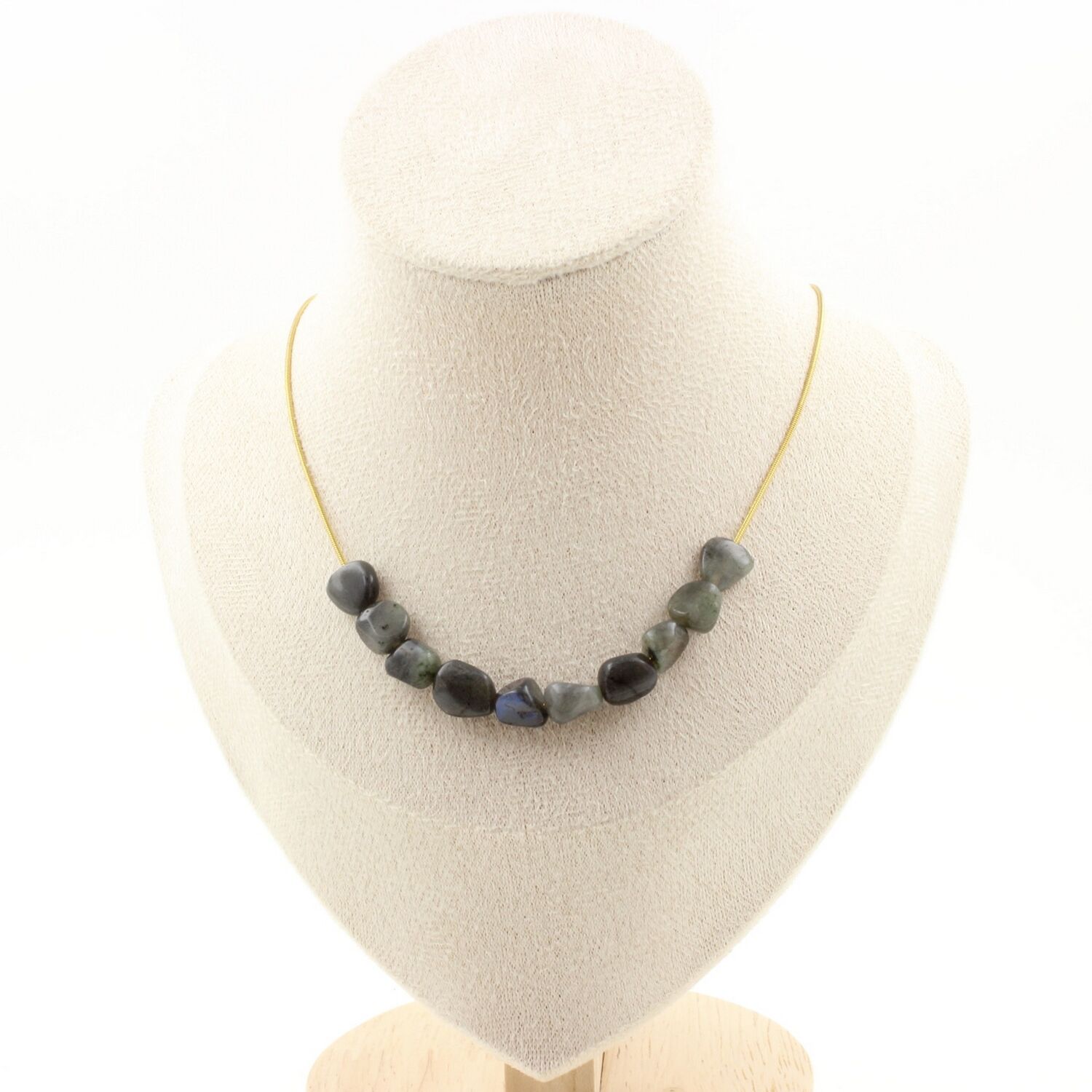 Labradorite from Finland 10 beads necklace, golden stainless steel chain length 45 cm. We can make it to your length on request . Made in France in our A Bijoux workshop. Delivered in a box pouch. Necklace for women, men, children. Discover more than 1000 models of necklaces made by the A Bijoux brand with new arrivals every day.