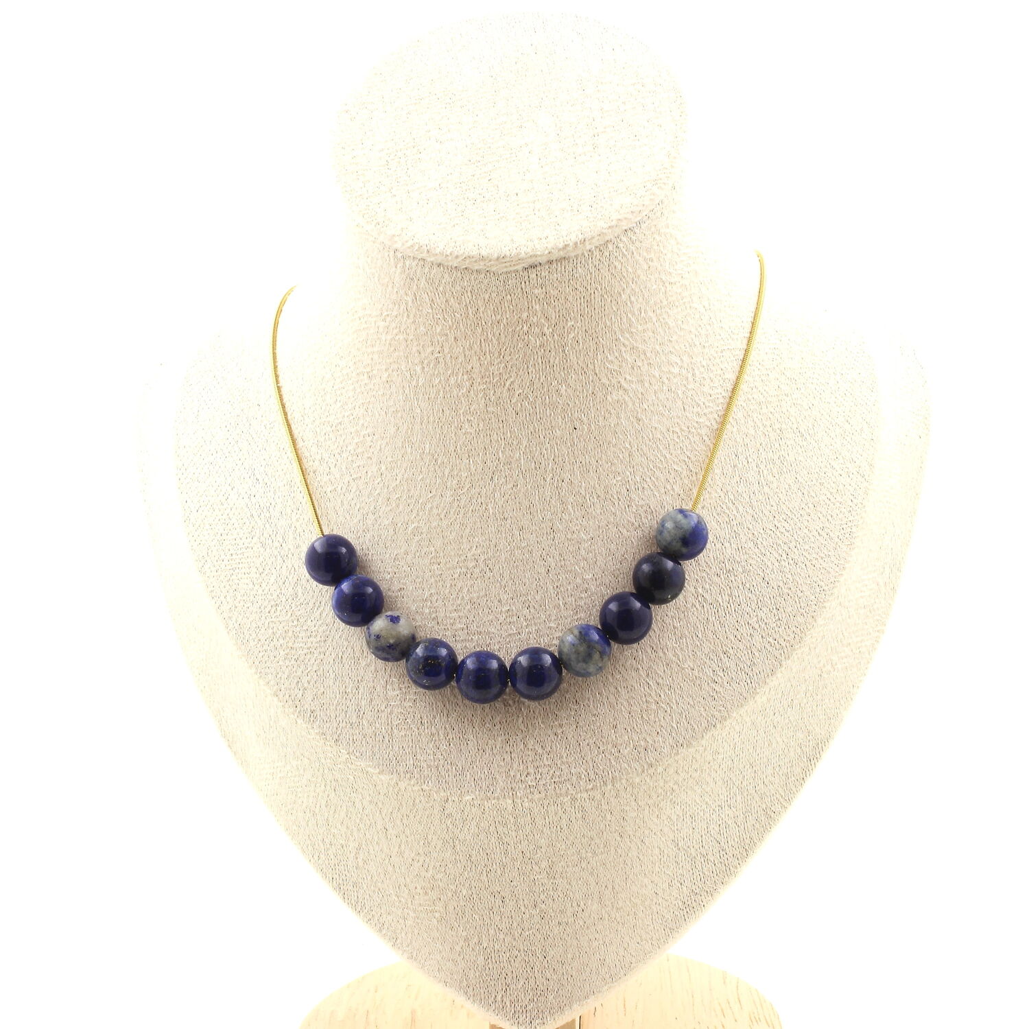 Lapis Lazuli 8 mm 10 beads necklace. Golden stainless steel chain