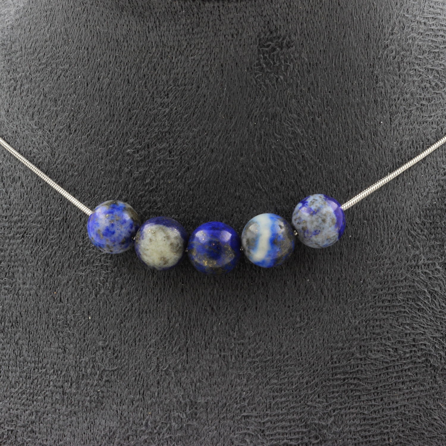 Lapis Lazuli from Pakistan quality 5A 8mm 5 beads necklace. Stainless steel chain