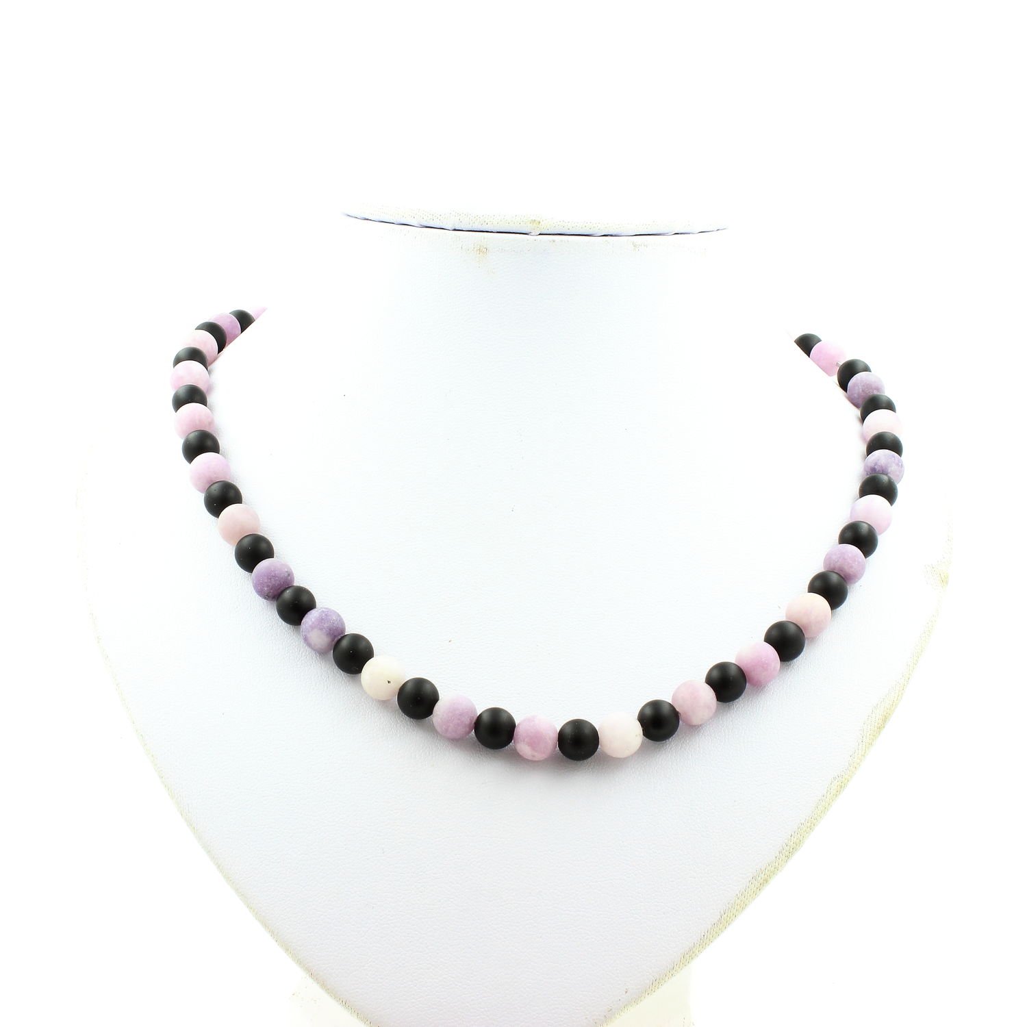 Matte purple Mica + Matte black Onyx 8 mm beaded necklace