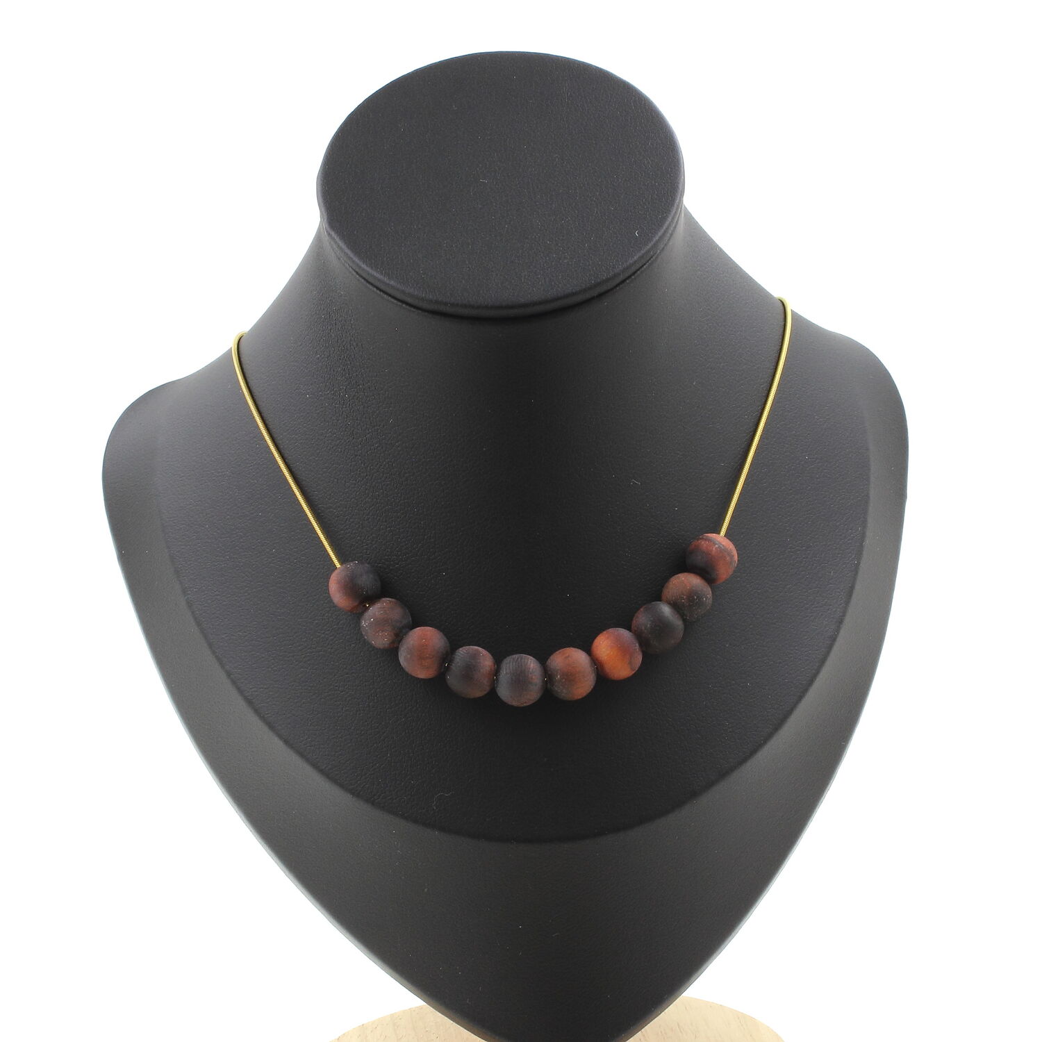 Matte red Tiger's Eye 8 mm 10 beads necklace, golden stainless steel chain length 45 cm. We can make it to your length on request . Made in France in our A Bijoux workshop. Delivered in a box pouch. Necklace for women, men, children. Discover more than 1000 models of necklaces made by the A Bijoux brand with new arrivals every day.