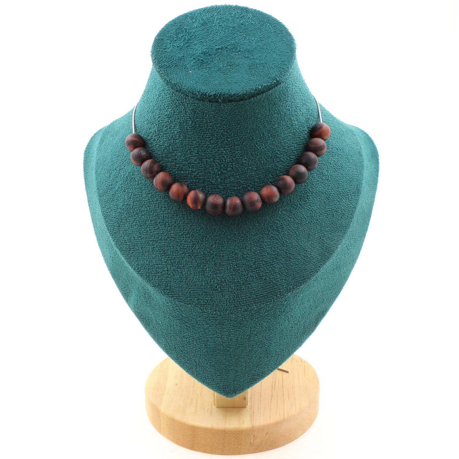 Matte red Tiger's Eye 8 mm 15 beads necklace, stainless steel chain length 45 cm. We can make it to your length on request . Made in France in our A Bijoux workshop. Delivered in a box pouch. Necklace for women, men, children. Discover more than 1000 models of necklaces made by the A Bijoux brand with new arrivals every day.
