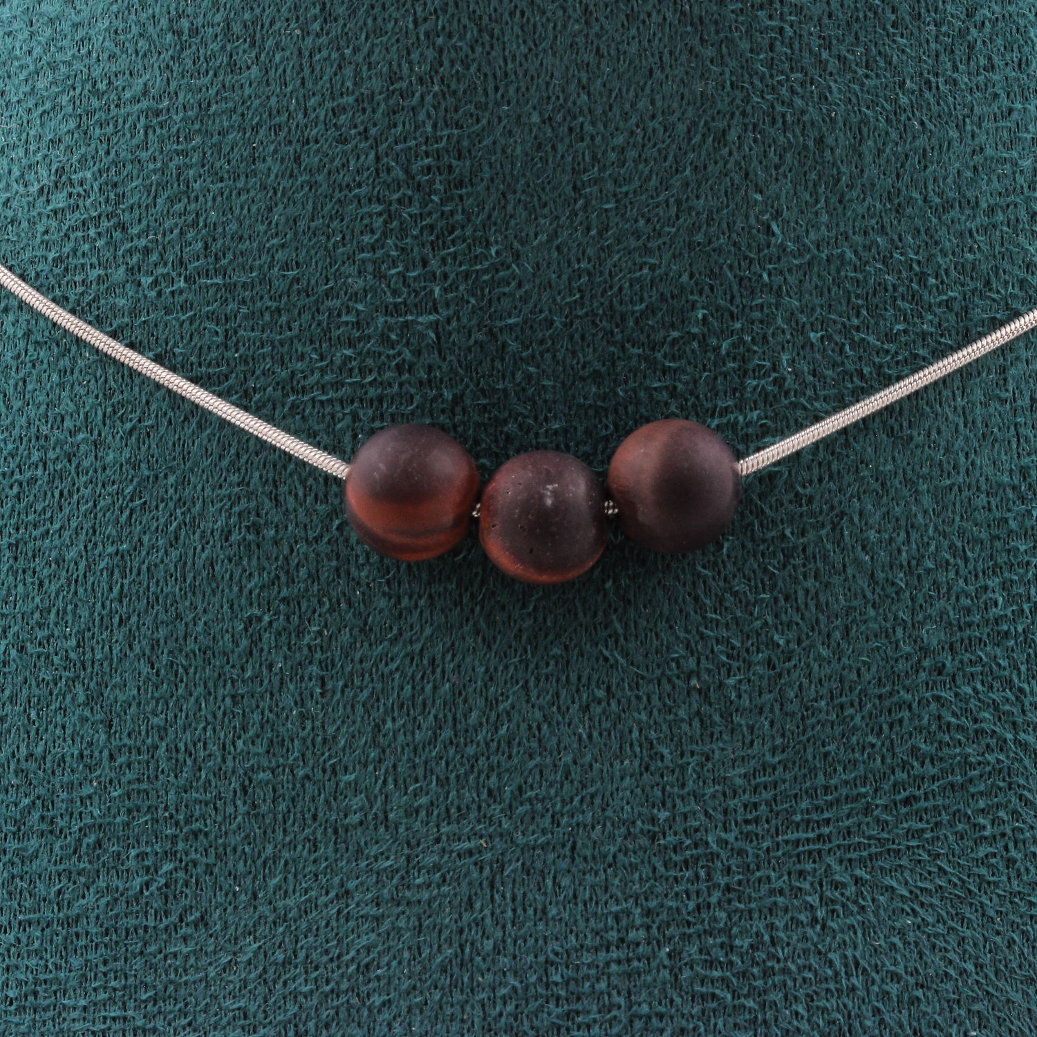 Matte red Tiger's Eye 8 mm 3 beads necklace, stainless steel chain length 45 cm. We can make it to your length on request. Made in France in our A Bijoux workshop. Delivered in a box pouch. Necklace for women, men, children. Discover more than 1000 models of necklaces made by the A Bijoux brand with new arrivals every day.
