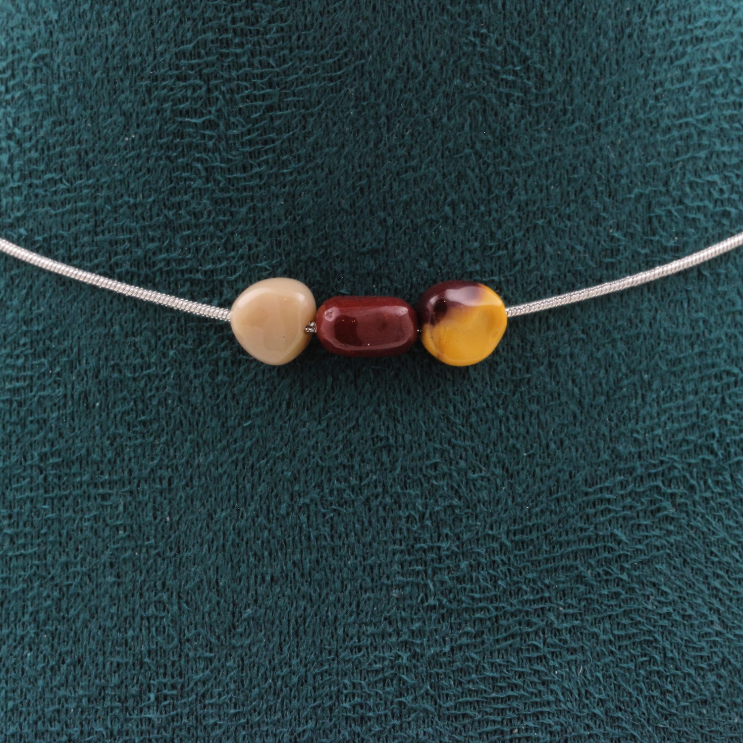 Mookaite from Australia 8 mm 3 beads necklace. Stainless steel chain