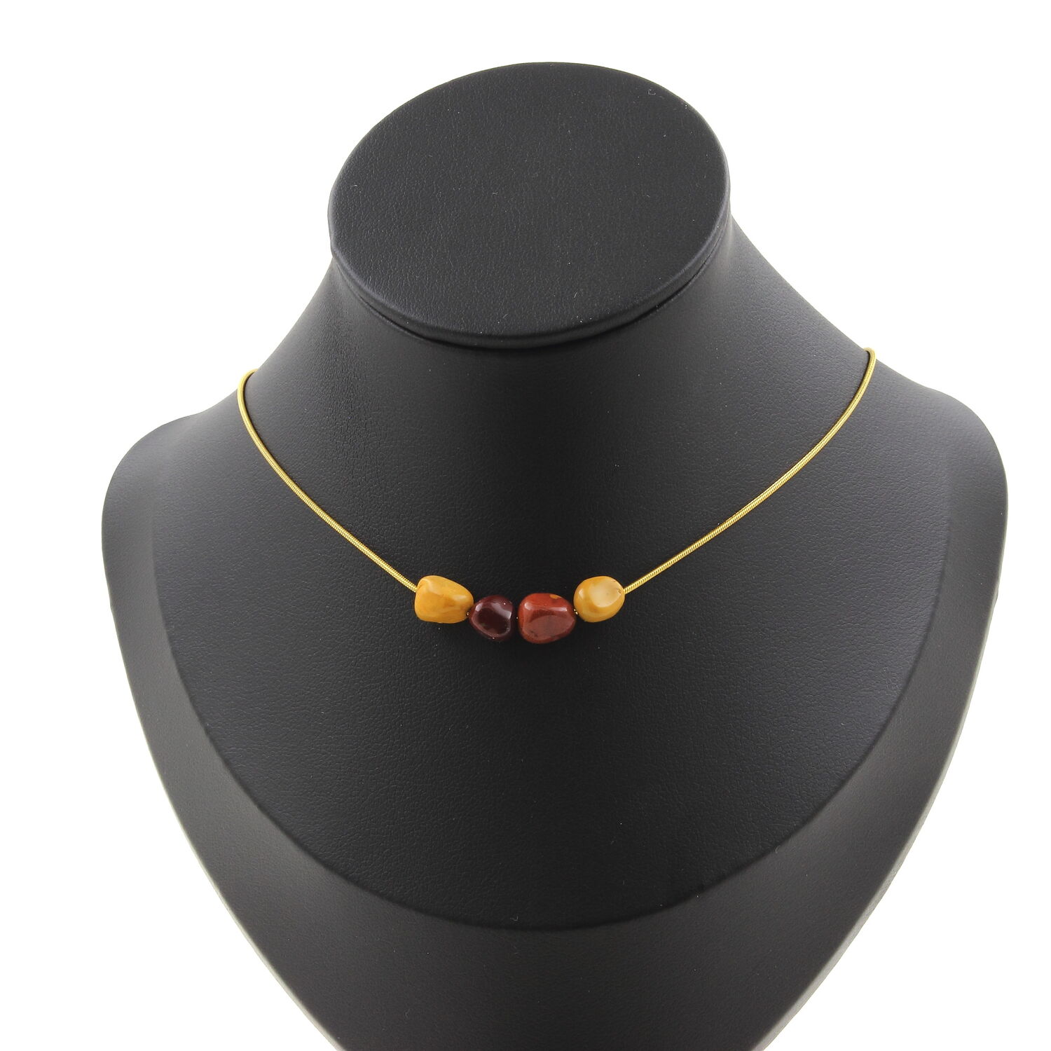 Mookaite from Australia 8 mm 4 beads necklace. Golden stainless steel chain