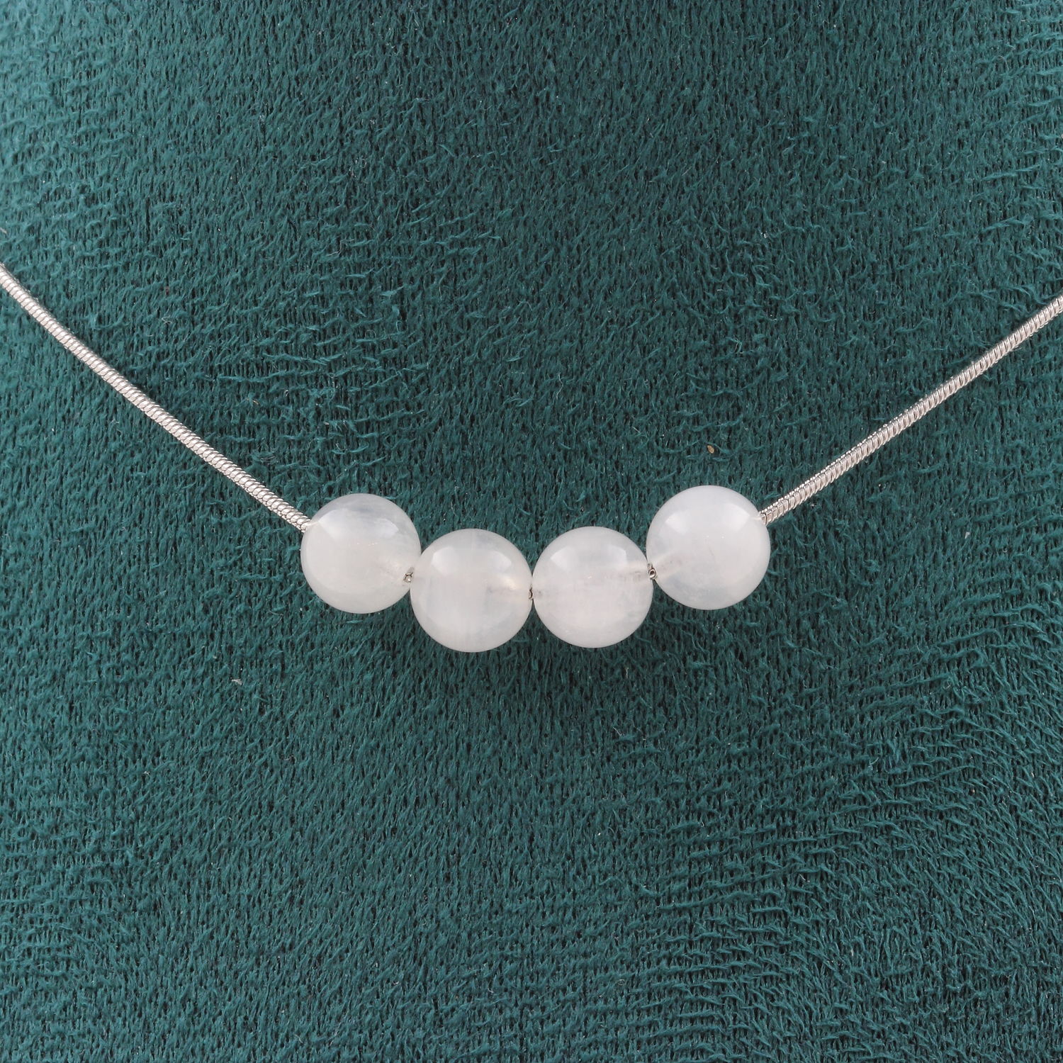 Moonstone from Sri Lanka 8 mm 4 beads necklace. Stainless steel chain