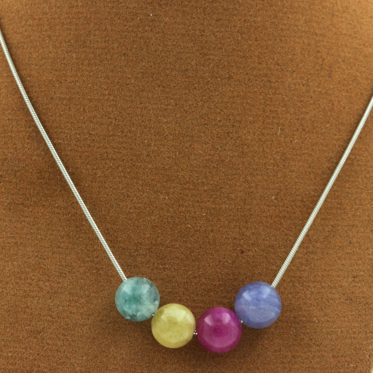 Multicolor Tourmaline 8 mm beaded necklace, stainless steel chain length 45 cm. We can make it to your length on request. Made in France in our A Bijoux workshop. Delivered in a box pouch. Necklace for women, men, children. Discover more than 1000 models of necklaces made by the A Bijoux brand with new arrivals every day.