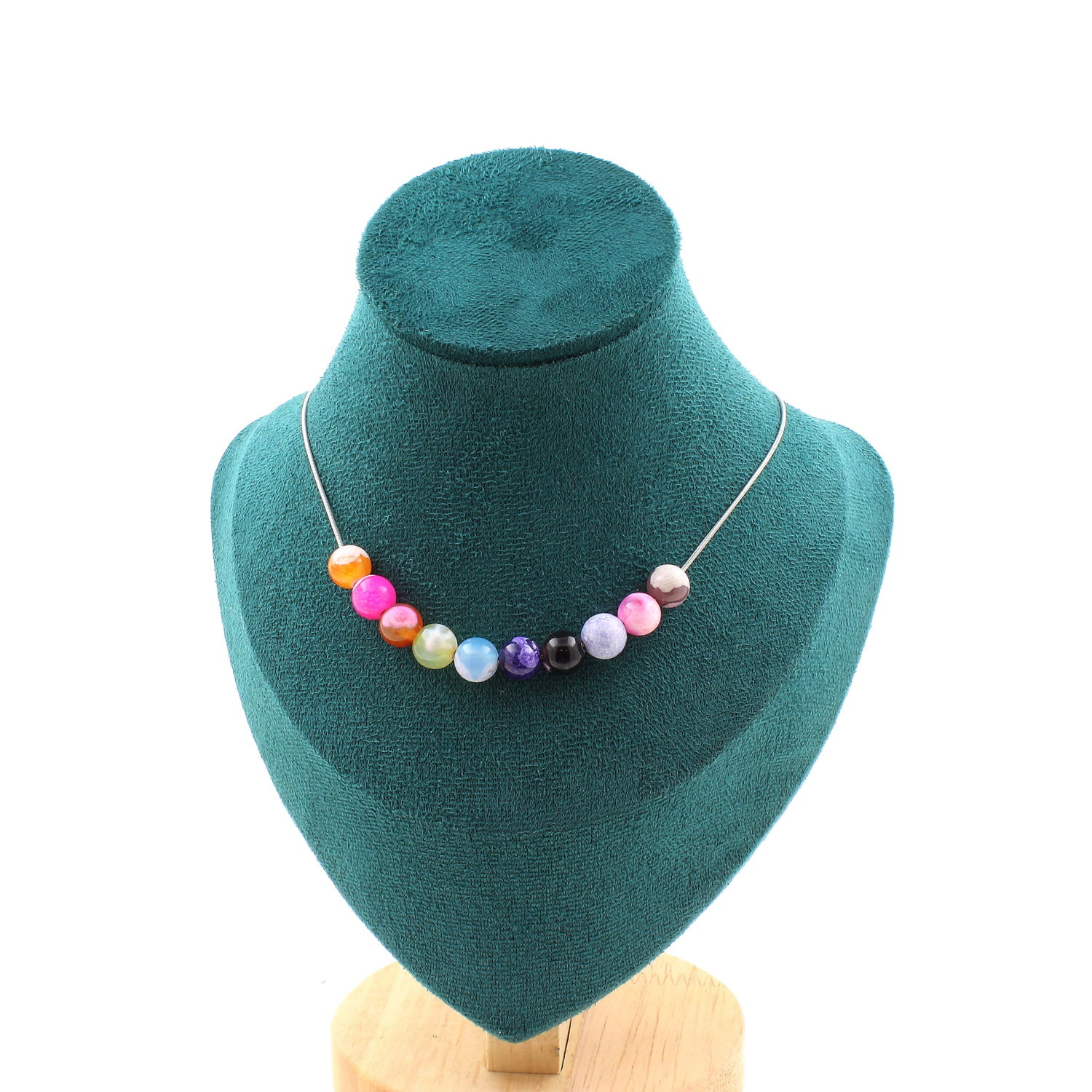 Multicolored Fuchsia cracked Agate 10 bead necklace 8 mm, stainless steel chain length 45 cm. We can make it to your length on request. Made in France in our A Bijoux workshop. Delivered in a box pouch. Necklace for women, men, children. Discover more than 1000 models of necklaces made by the A Bijoux brand with new arrivals every day.