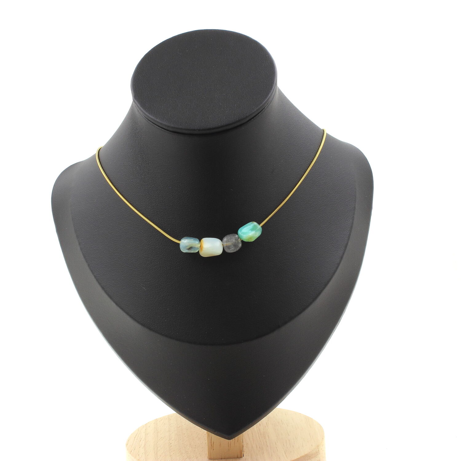 Multicolored Opal from Australia 4 beads necklace, golden stainless steel chain length 45 cm. We can make it to your length on request. Made in France in our A Bijoux workshop. Delivered in a box pouch. Necklace for women, men, children. Discover more than 1000 models of necklaces made by the A Bijoux brand with new arrivals every day.